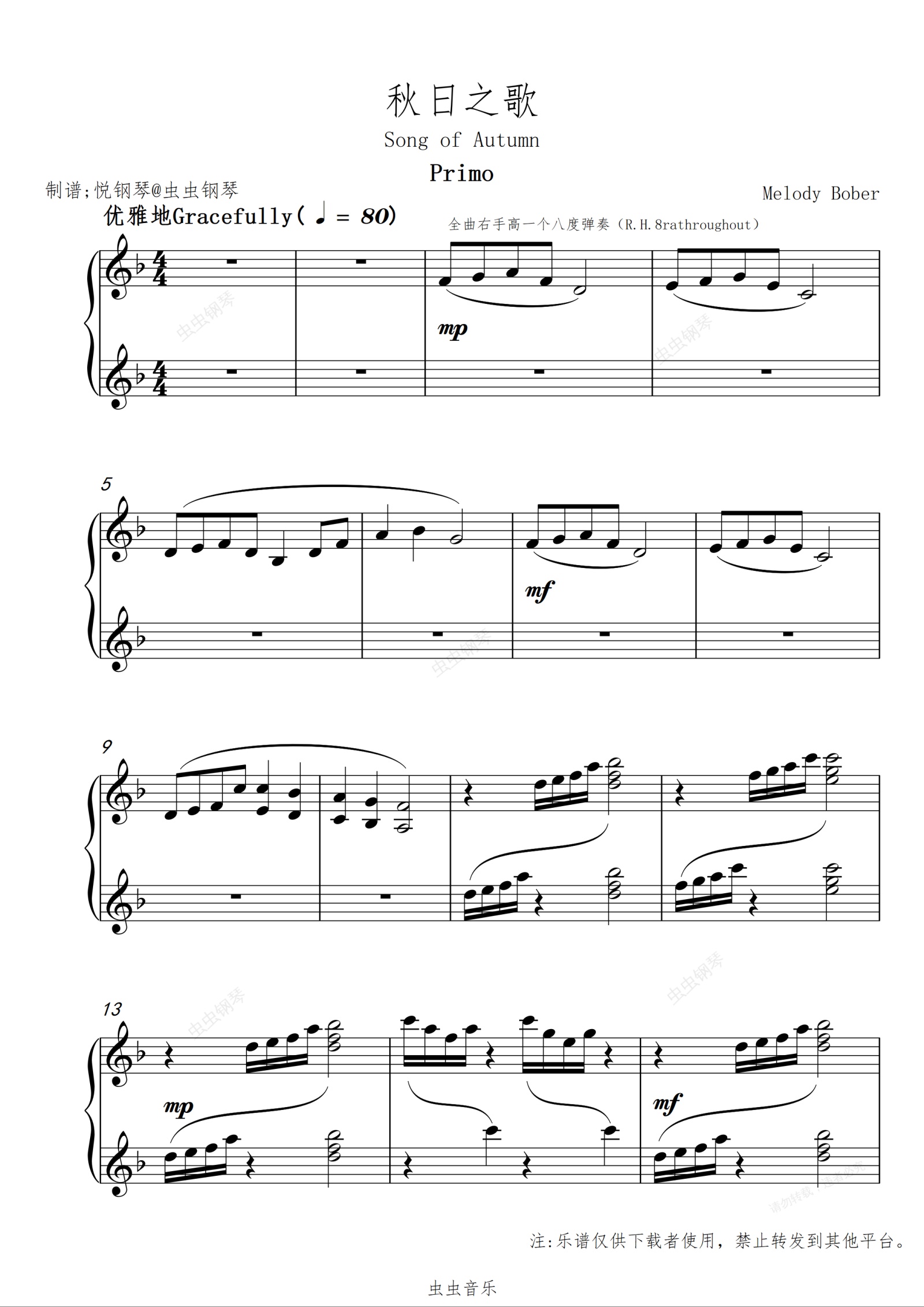 钢琴谱:秋日之歌//Song of Autumn-四手联弹【抒情-唯美】