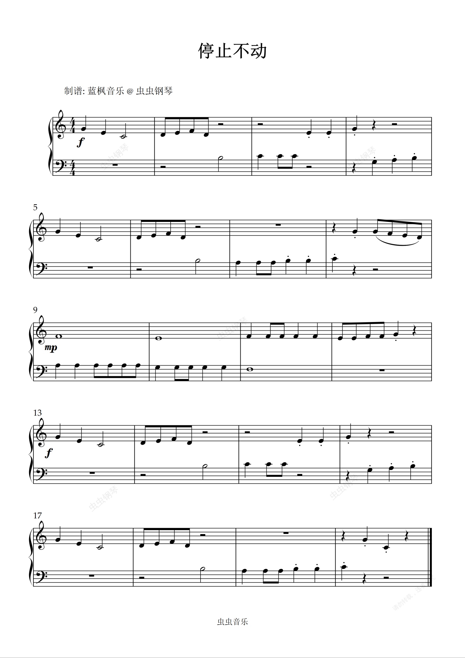 钢琴谱:停止不动