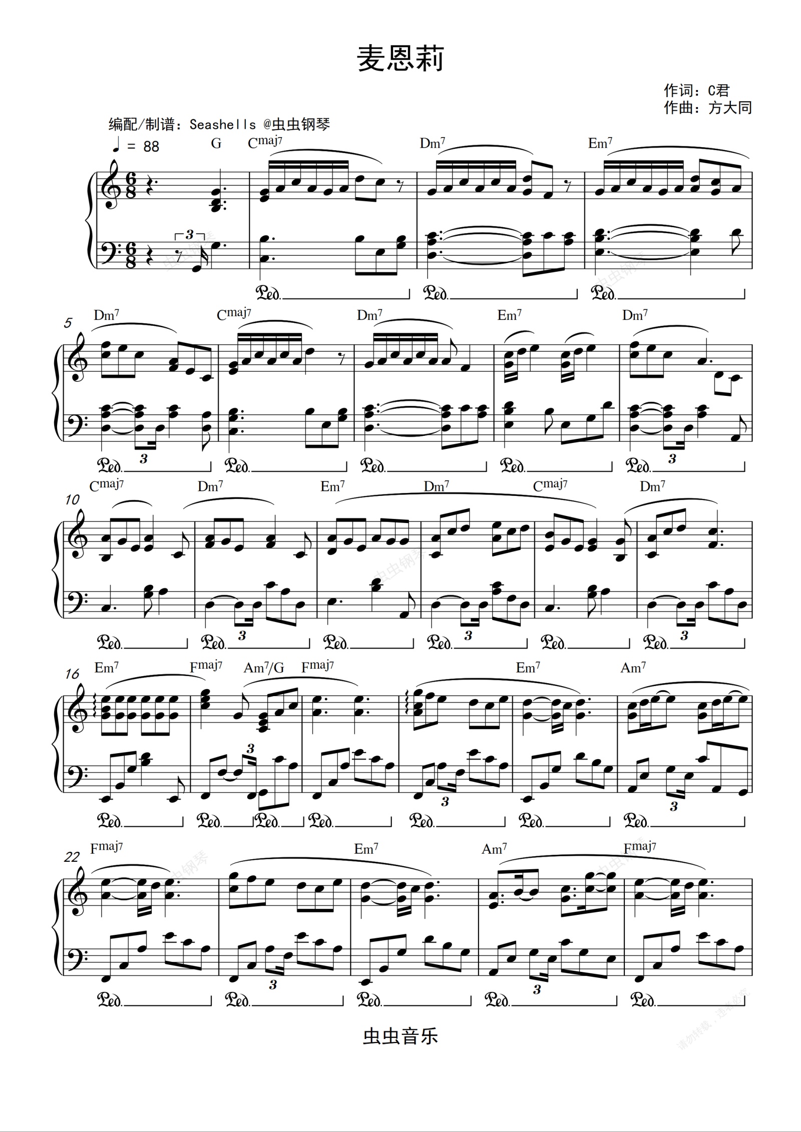 钢琴谱:方大同-《麦恩莉》精编钢琴独奏