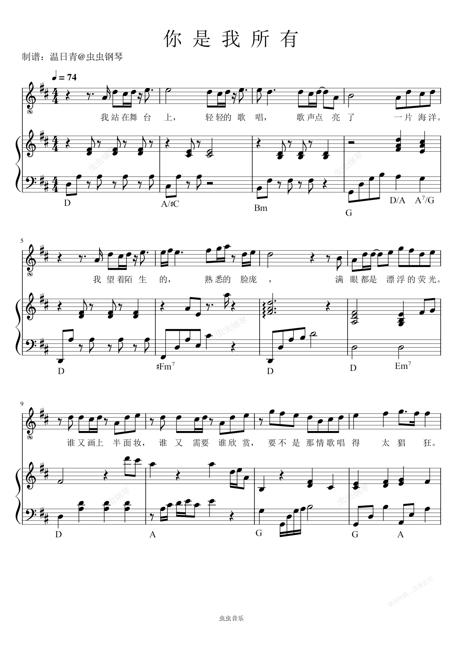 钢琴谱:女生弹唱《你是我所有》-良辰美景好时光  还原好听  简单
