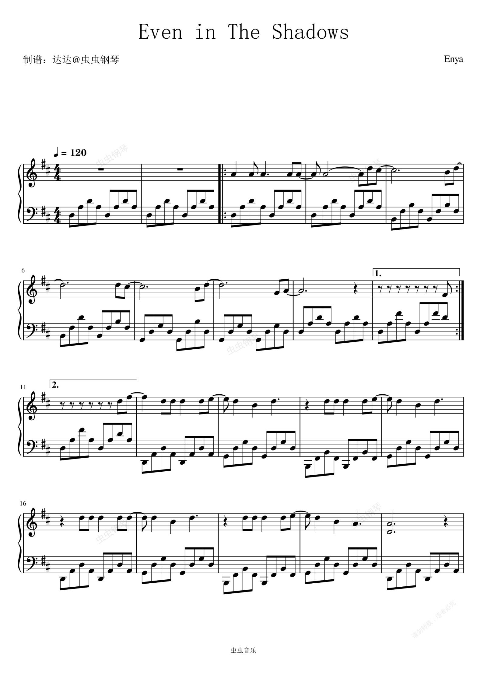 钢琴谱:Even In The Shadows - Enya (恩雅)