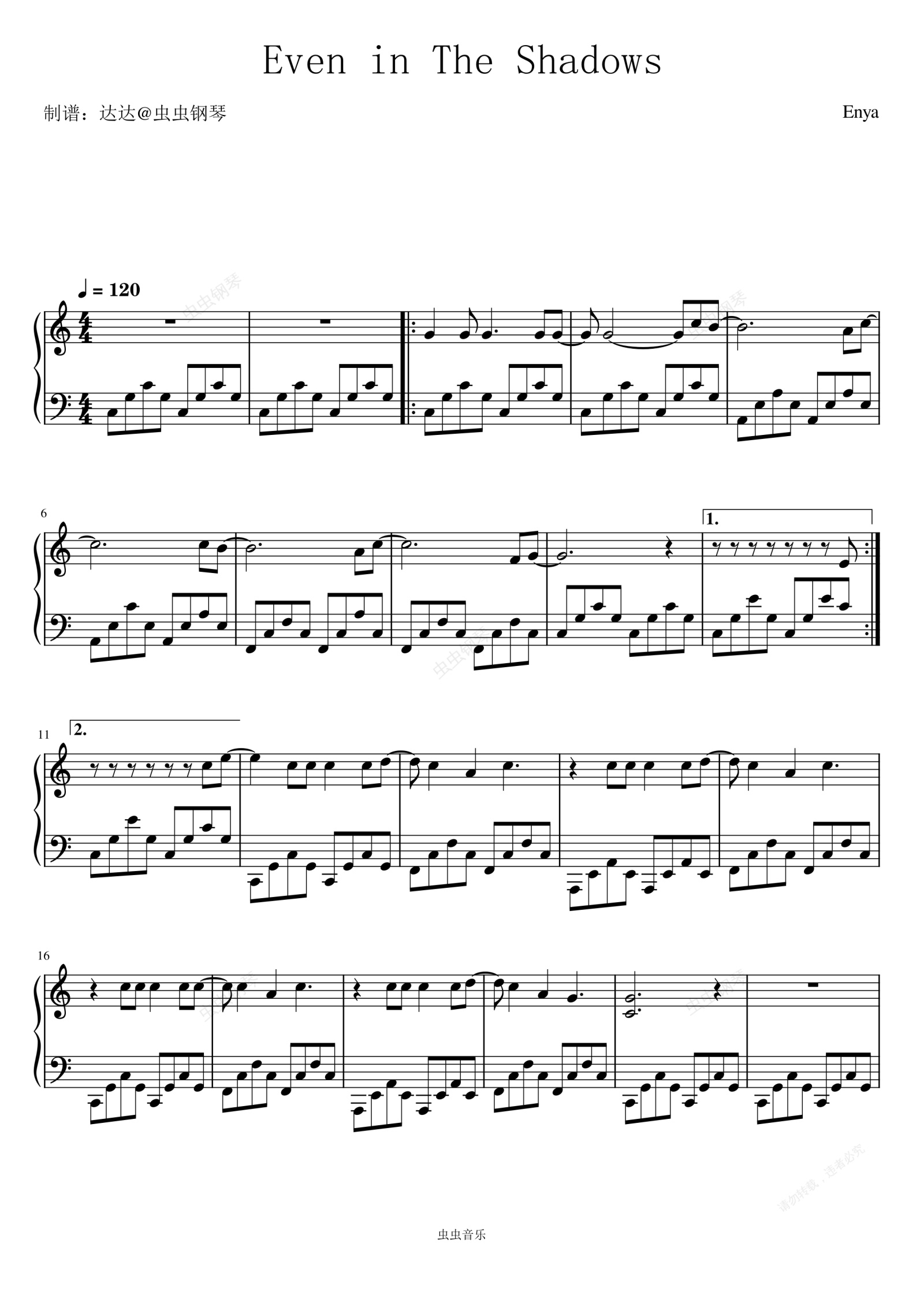 钢琴谱:Even In The Shadows - Enya (恩雅)