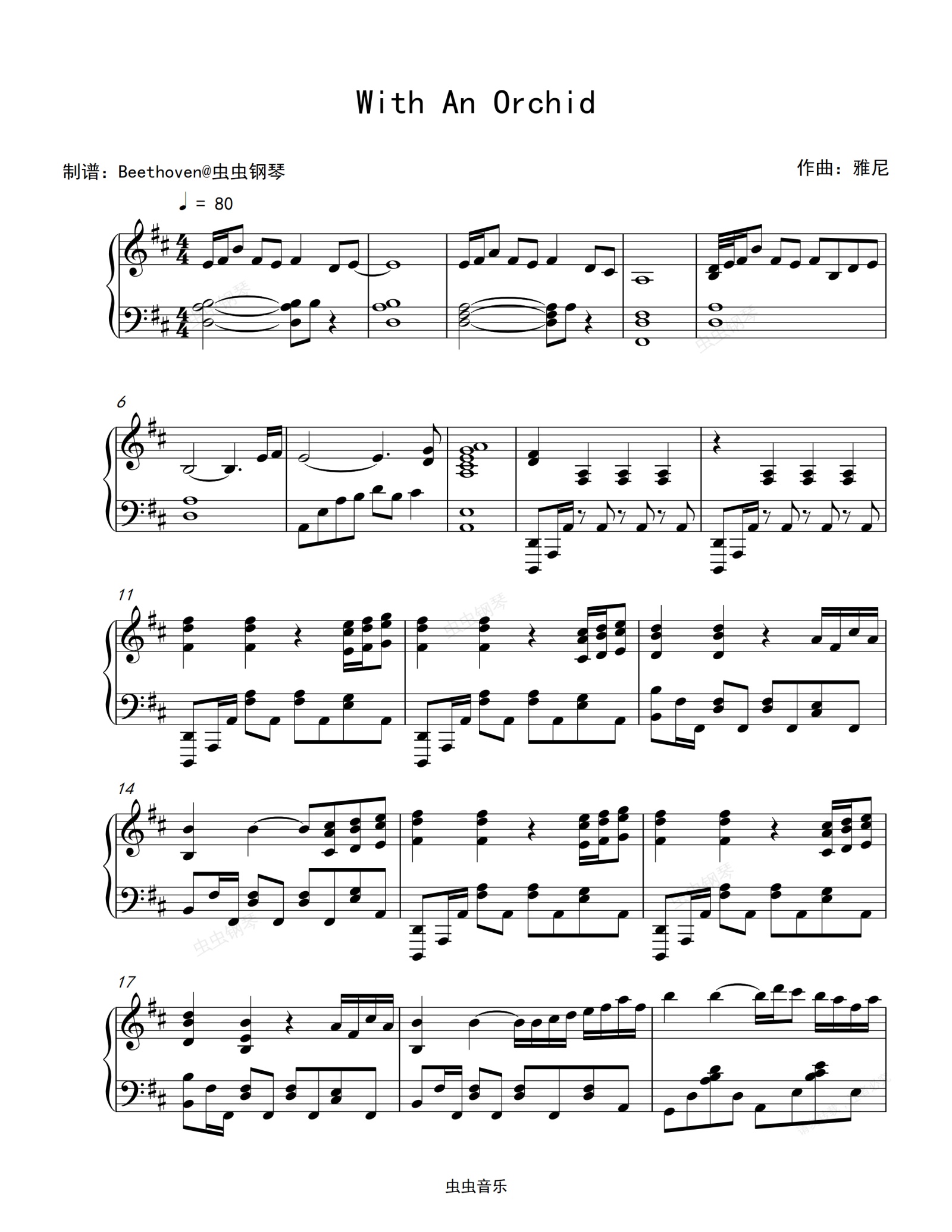 钢琴谱:心系兰花-With An Orchid-雅尼