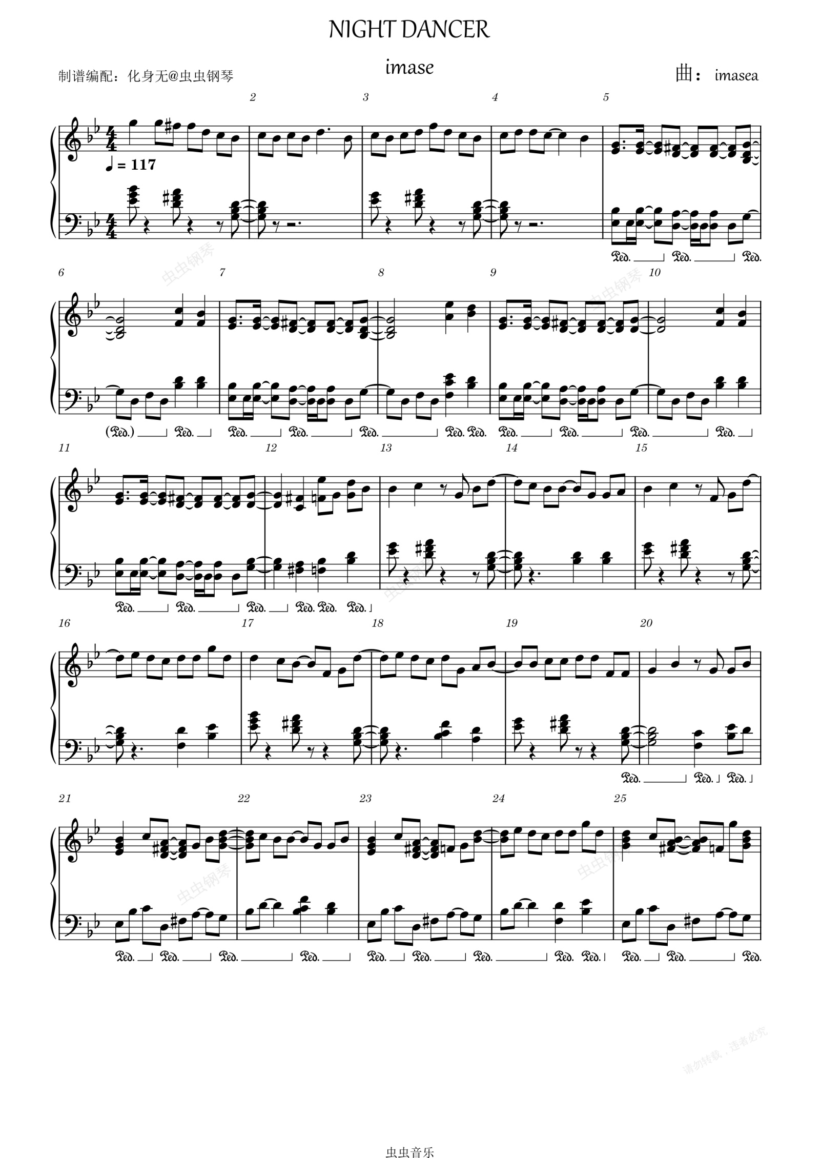 钢琴谱:NIGHT DANCER 化身无编配 原调独奏版