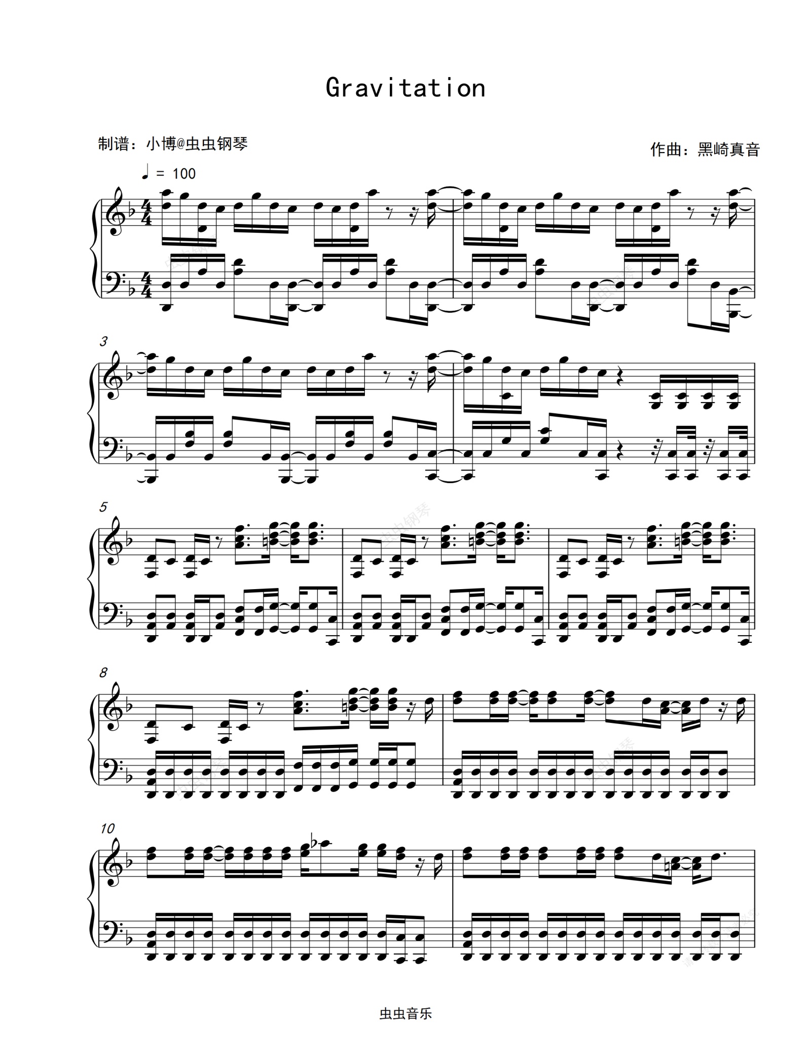 钢琴谱:Gravitation-魔法禁书目录ⅢOP-黑崎真音