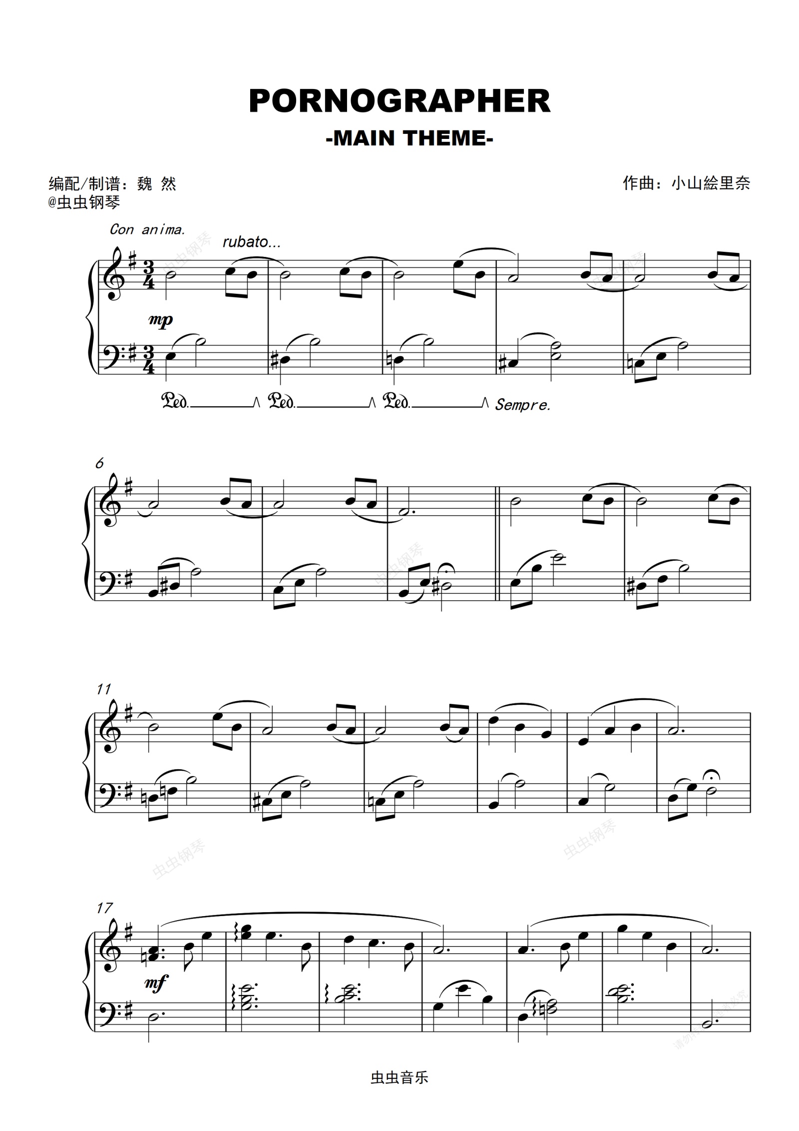钢琴谱:【老司机的爱情故事】插曲《Pornographer (main theme)》(正谱)——『忧伤歌声』
