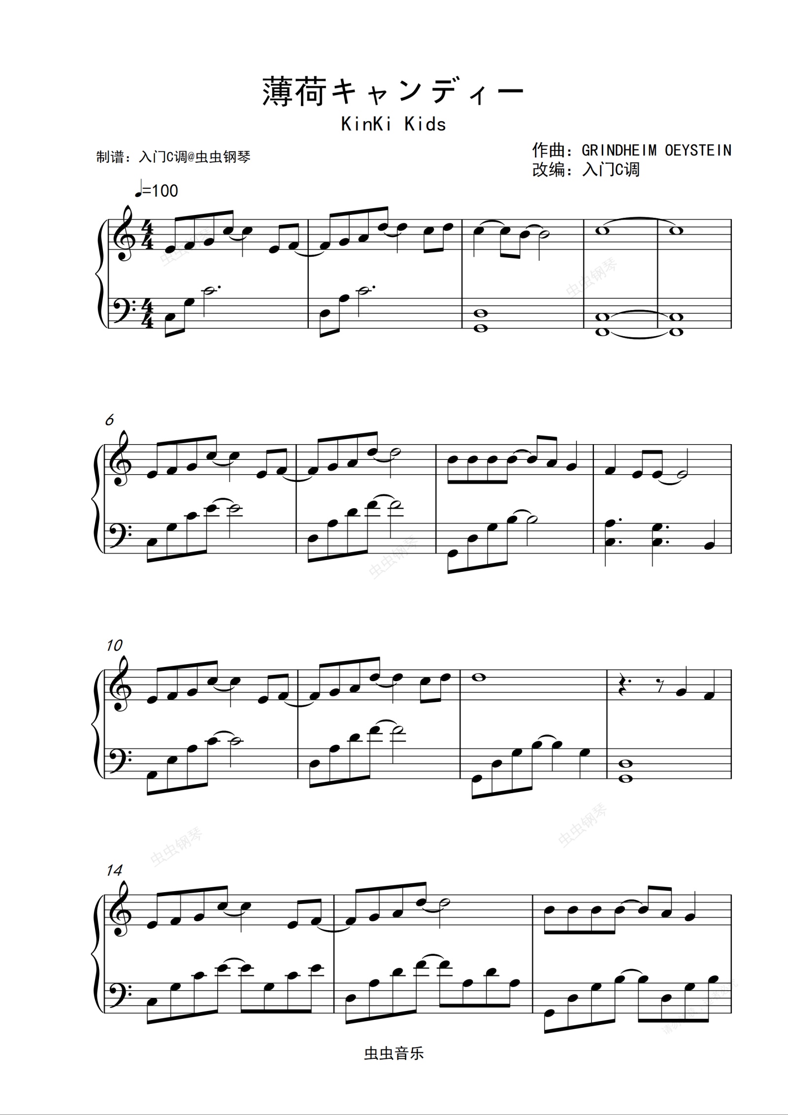 钢琴谱:KinKi Kids《薄荷キャンディー》入门C调简单版