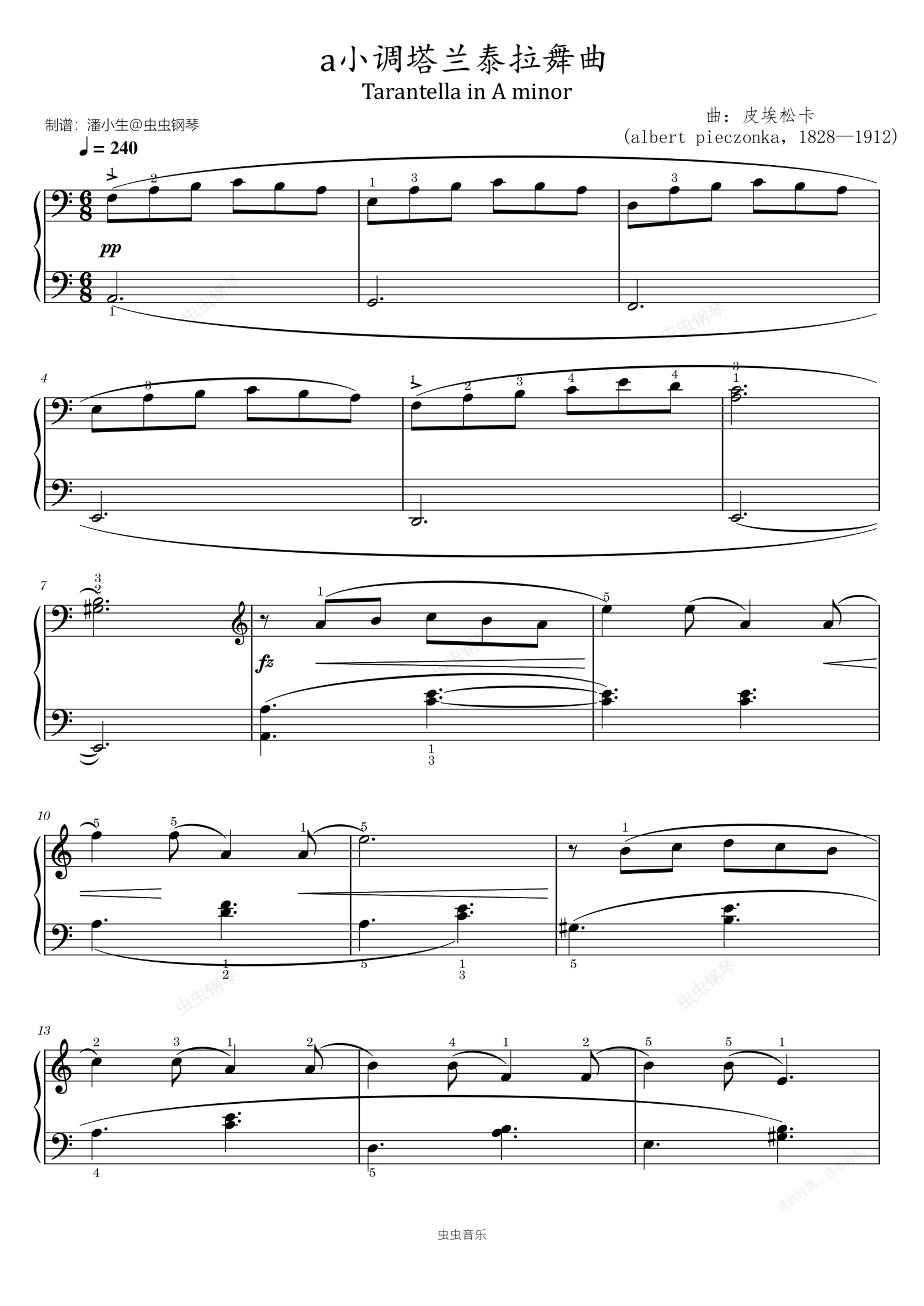 钢琴谱:Pieczonka 皮埃松卡 a小调塔兰泰拉舞曲 原版带指法 钢琴独奏谱