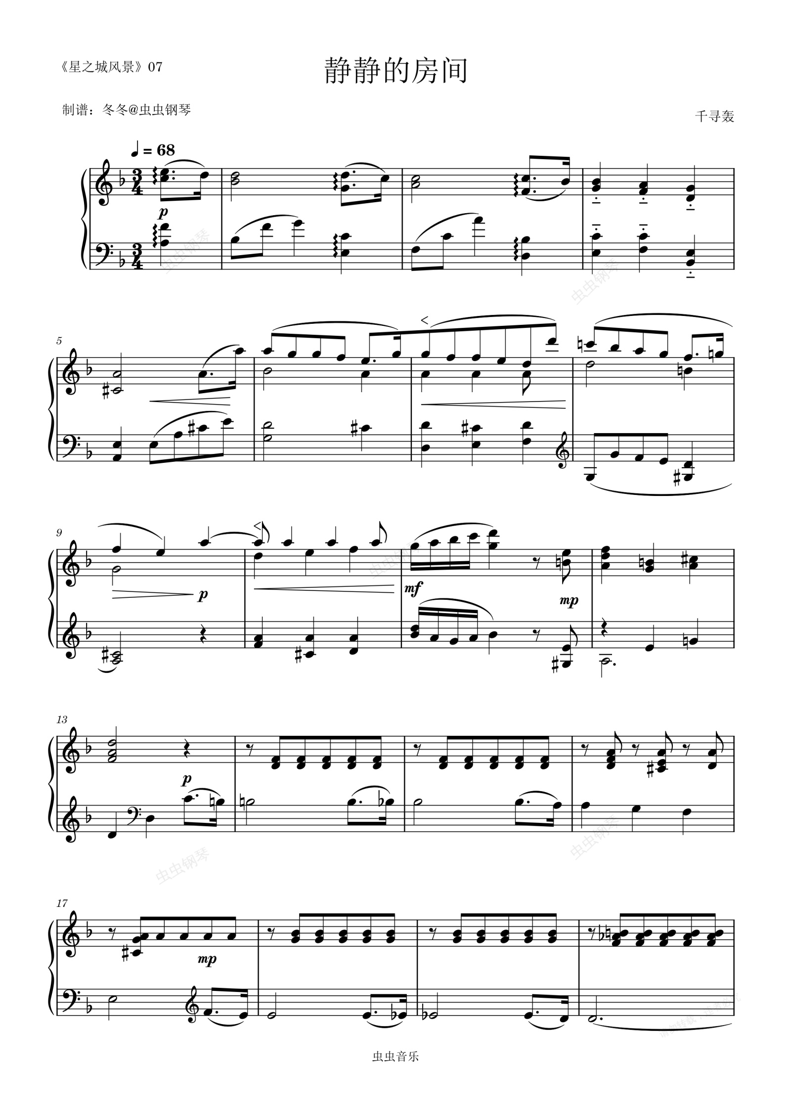 您的位置: 首页 > 钢琴谱库 > 静静的房间钢琴谱-千寻轰