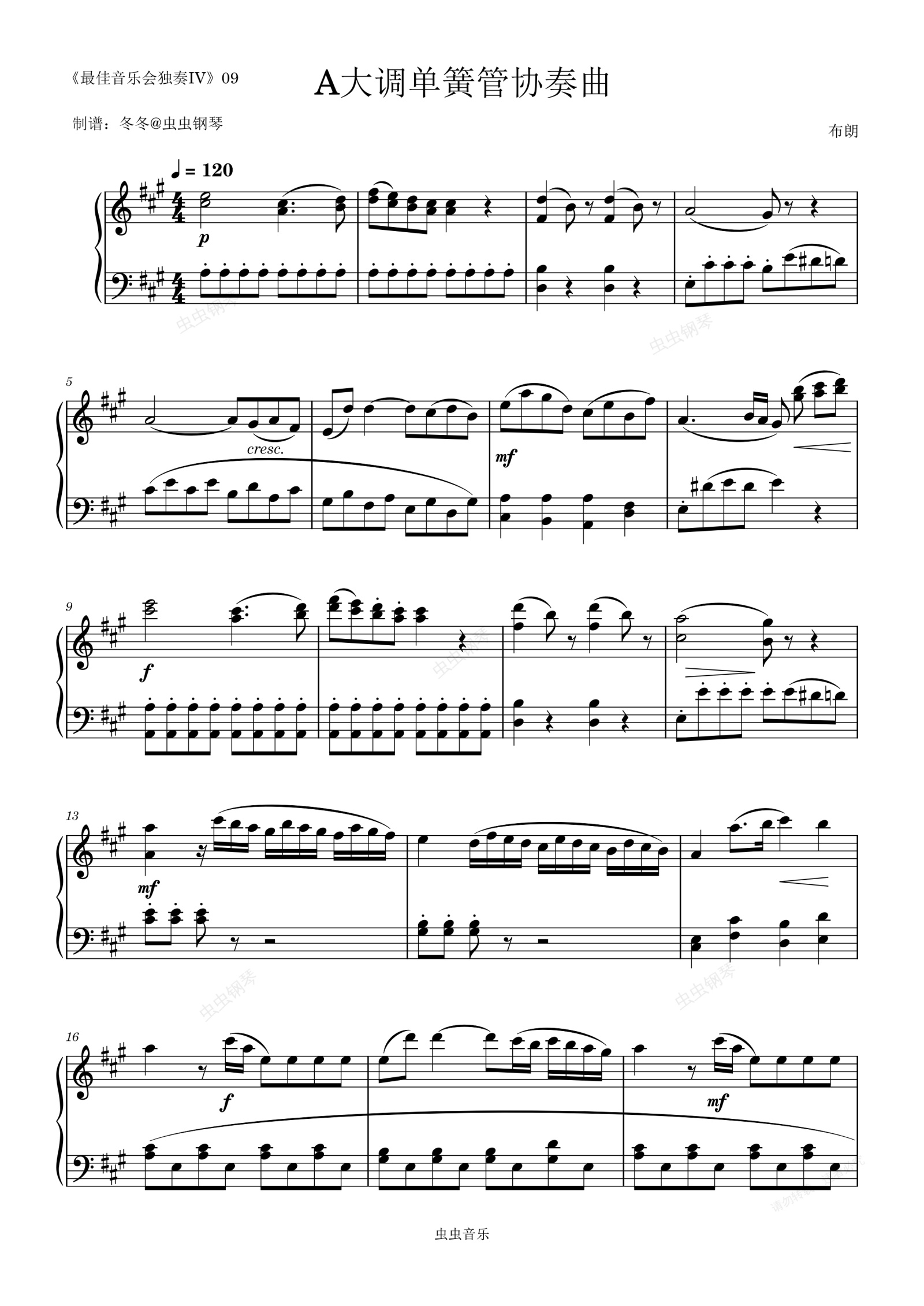 钢琴谱:A大调单簧管协奏曲