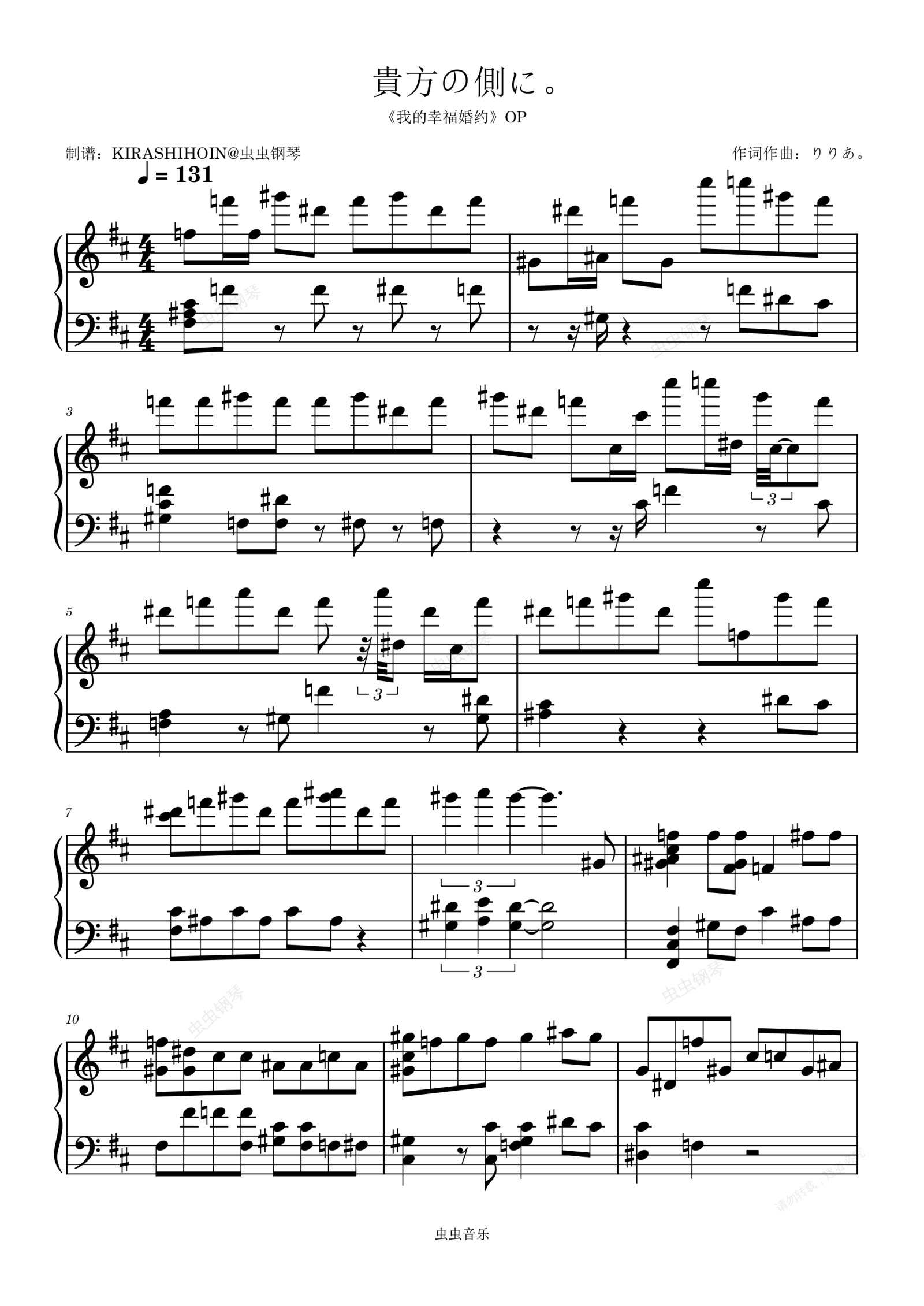 钢琴谱:貴方の側に。(《我的幸福婚约》OP/片头曲)- りりあ。