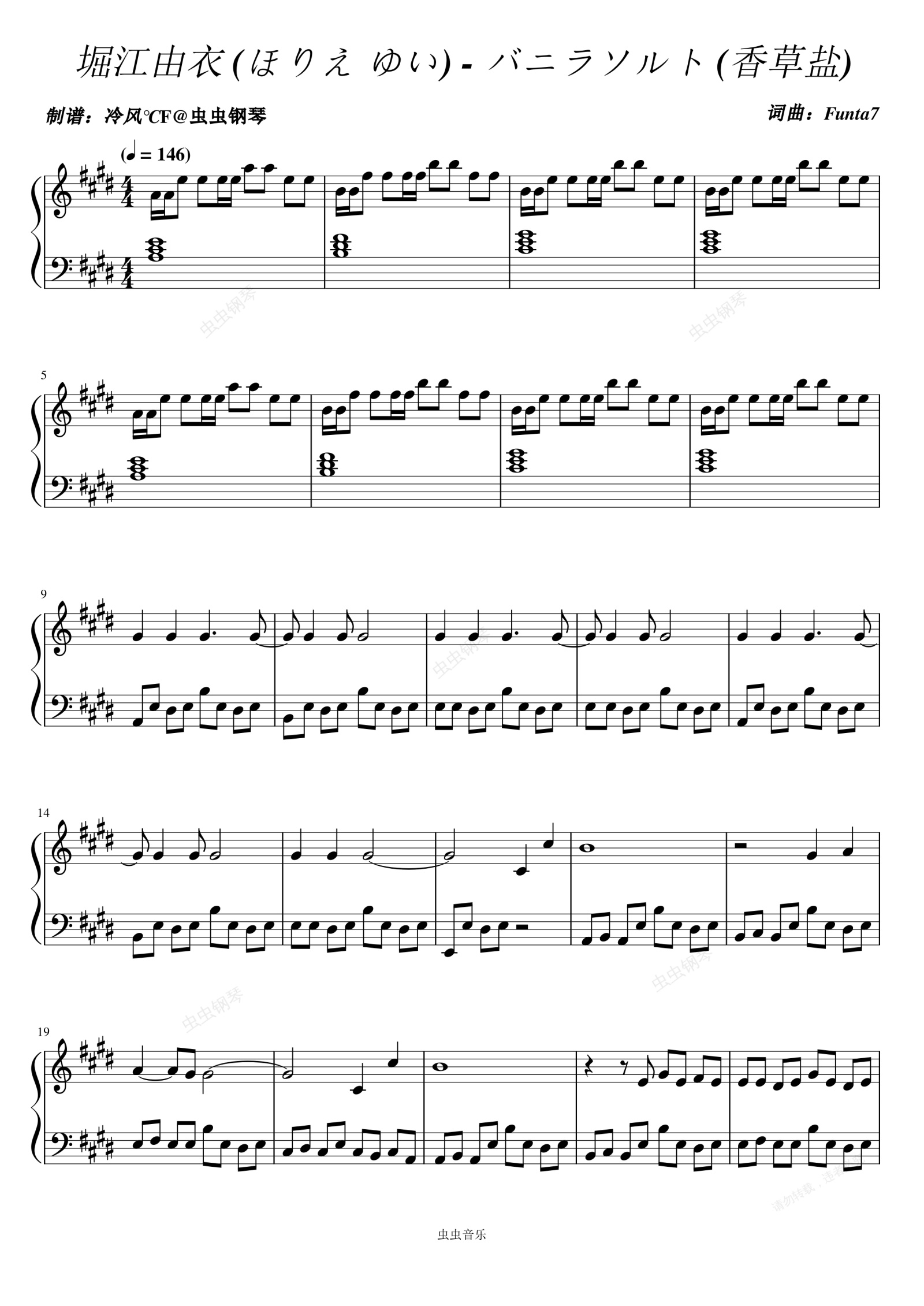 钢琴谱:堀江由衣 (ほりえ ゆい) - バニラソルト (香草盐)