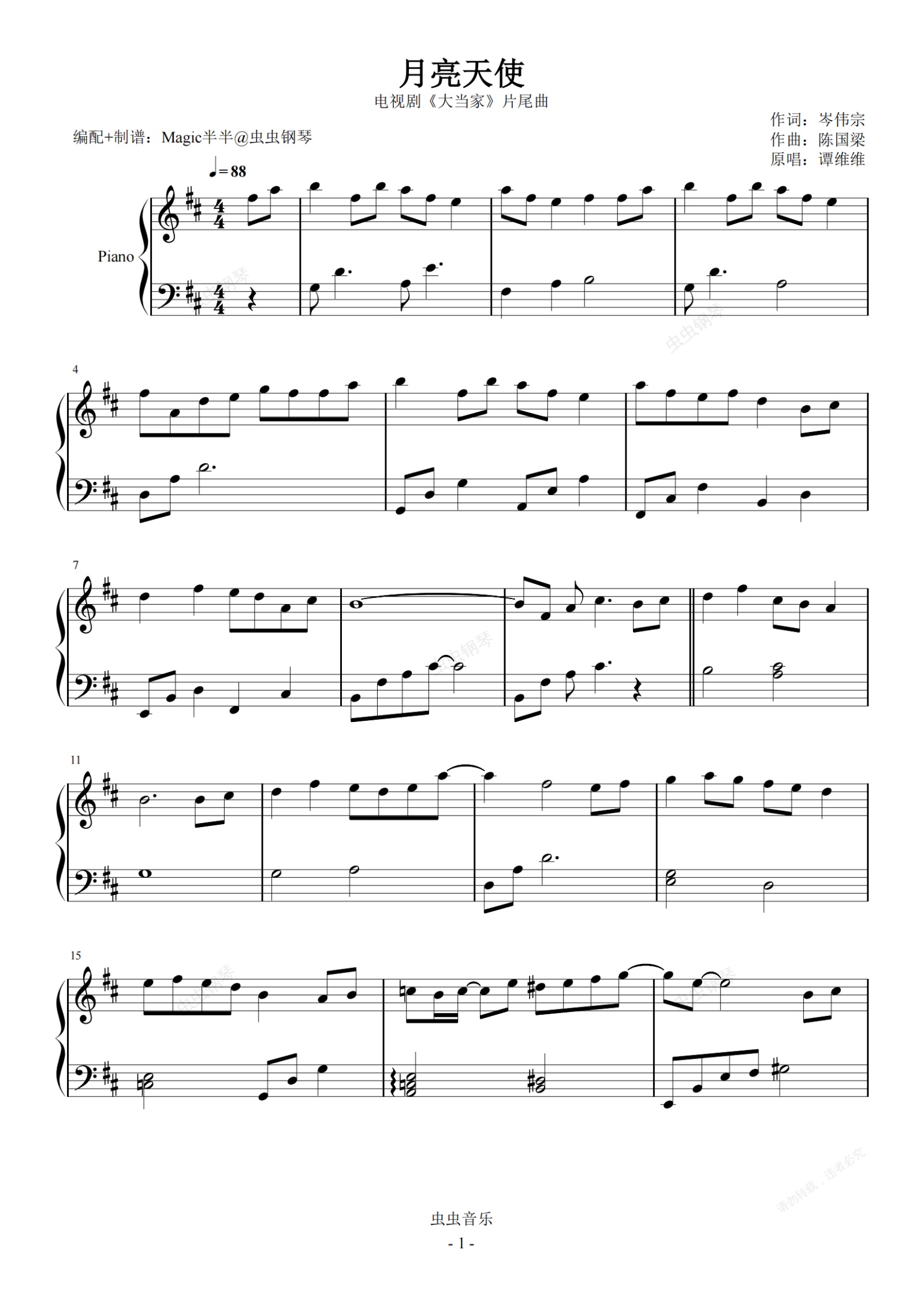 钢琴谱:月亮天使 <大当家>电视剧片尾曲