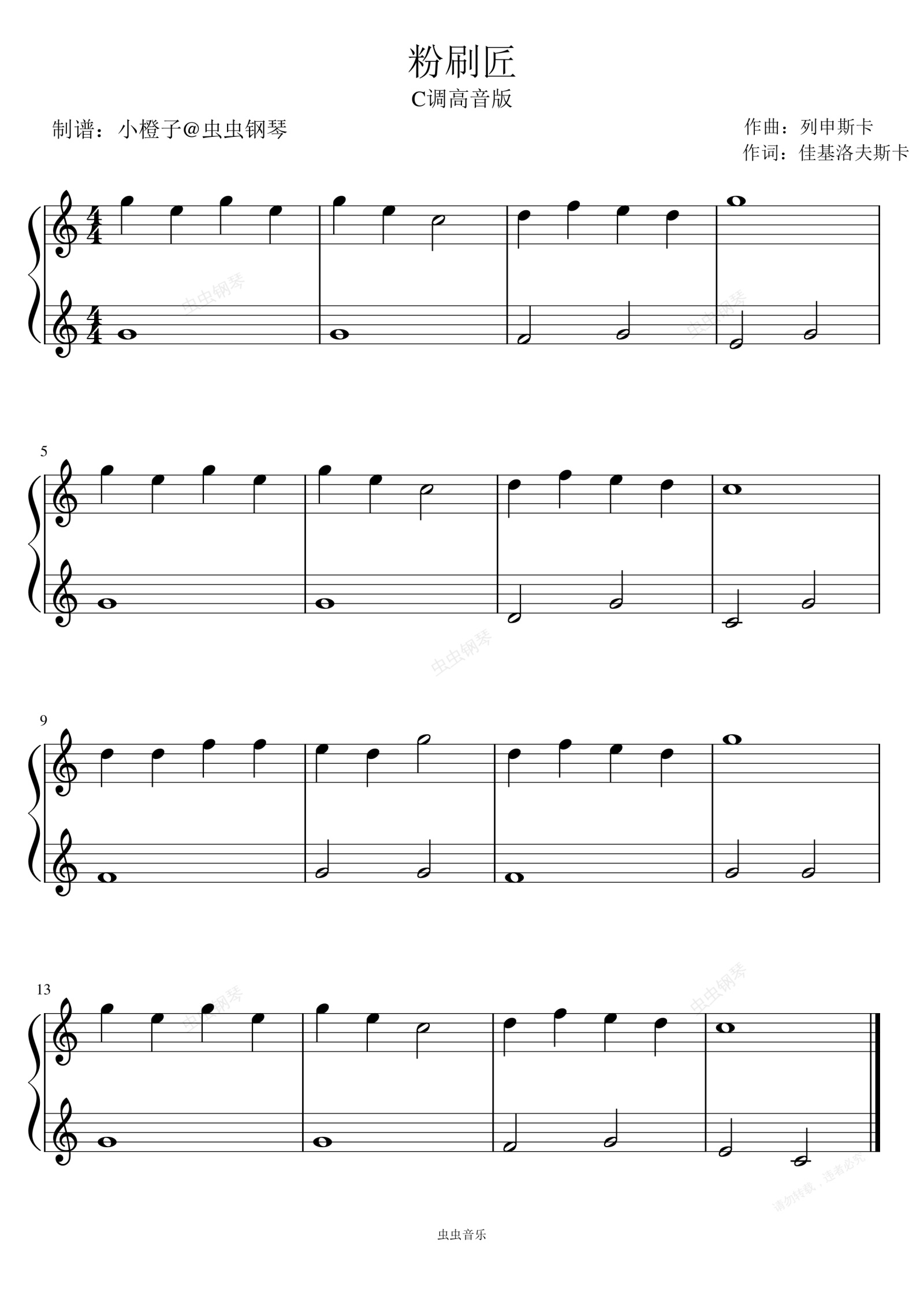 钢琴谱:⟪粉刷匠⟫C调高音谱号版+拜厄初学难度