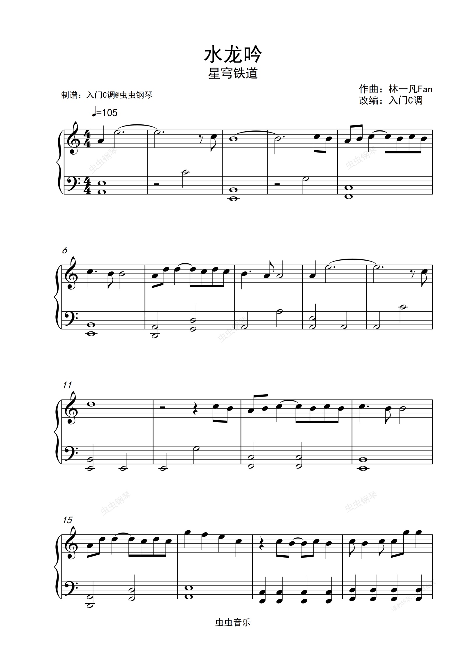 钢琴谱:优素《水龙吟》(《崩坏:星穹铁道》EP)入门C调简单版