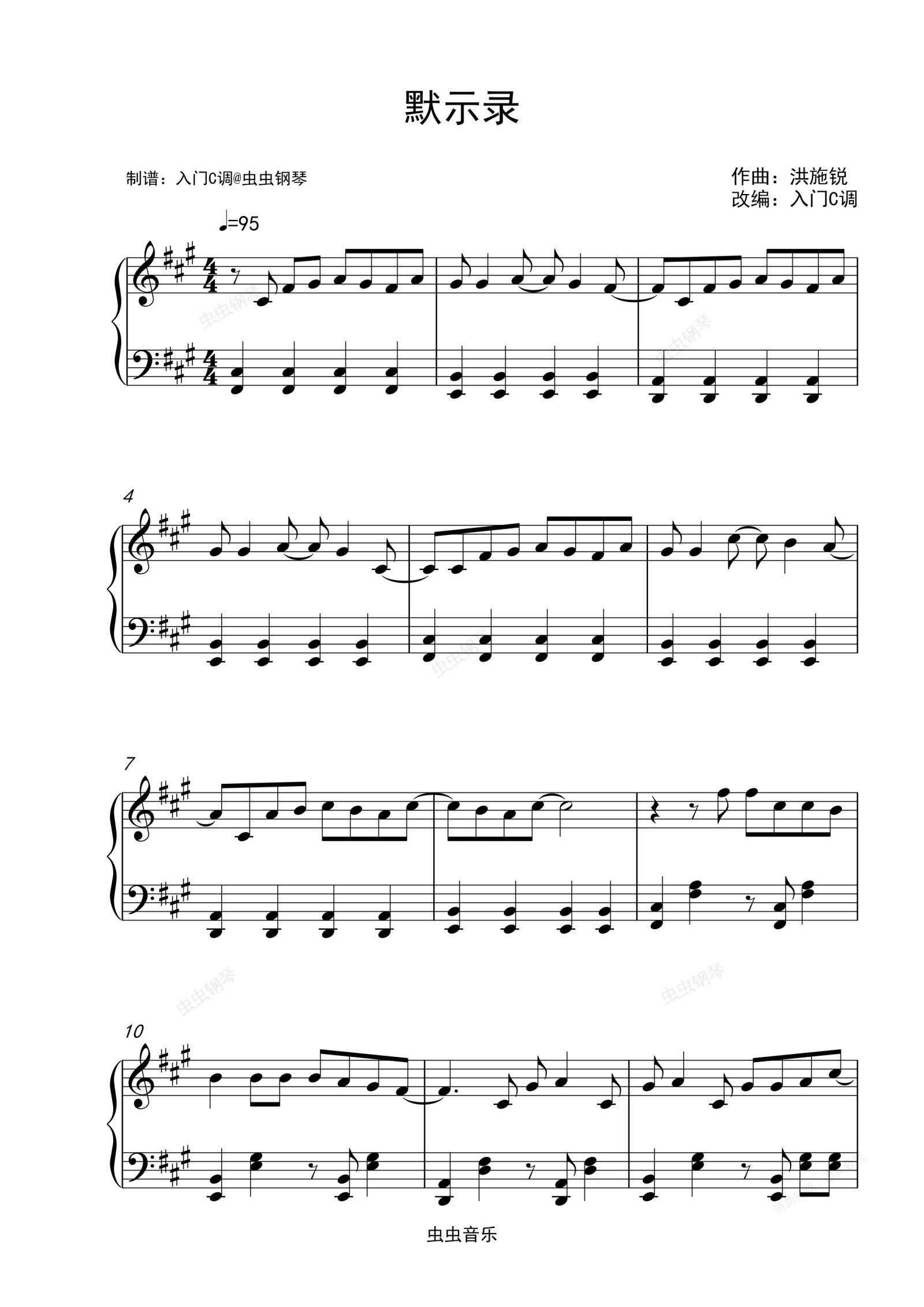 钢琴谱:大C《默示录》(广播剧《我在无限游戏里封神》主题曲)A调简单版