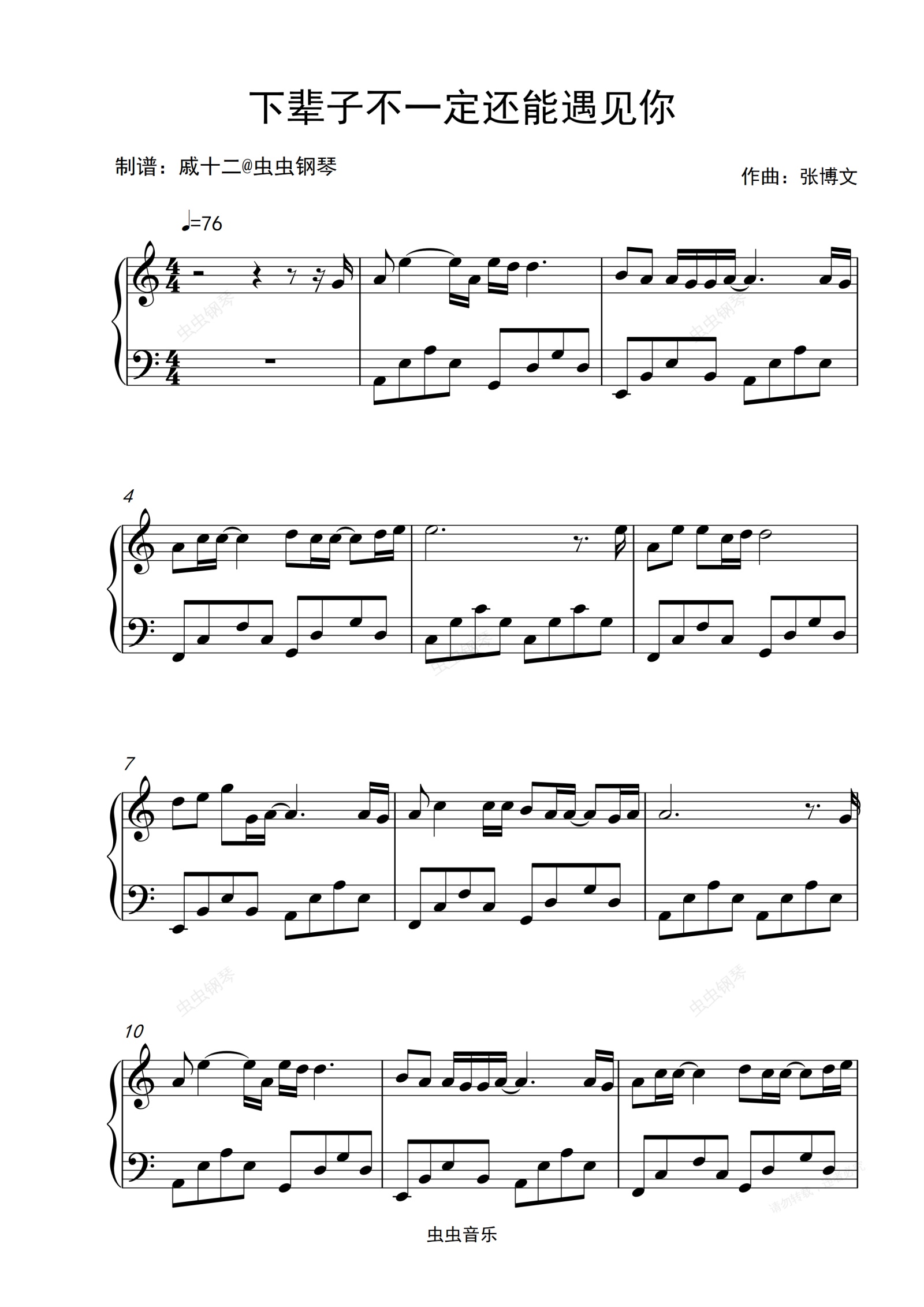 钢琴谱:下辈子不一定还能遇见你-C调简单版
