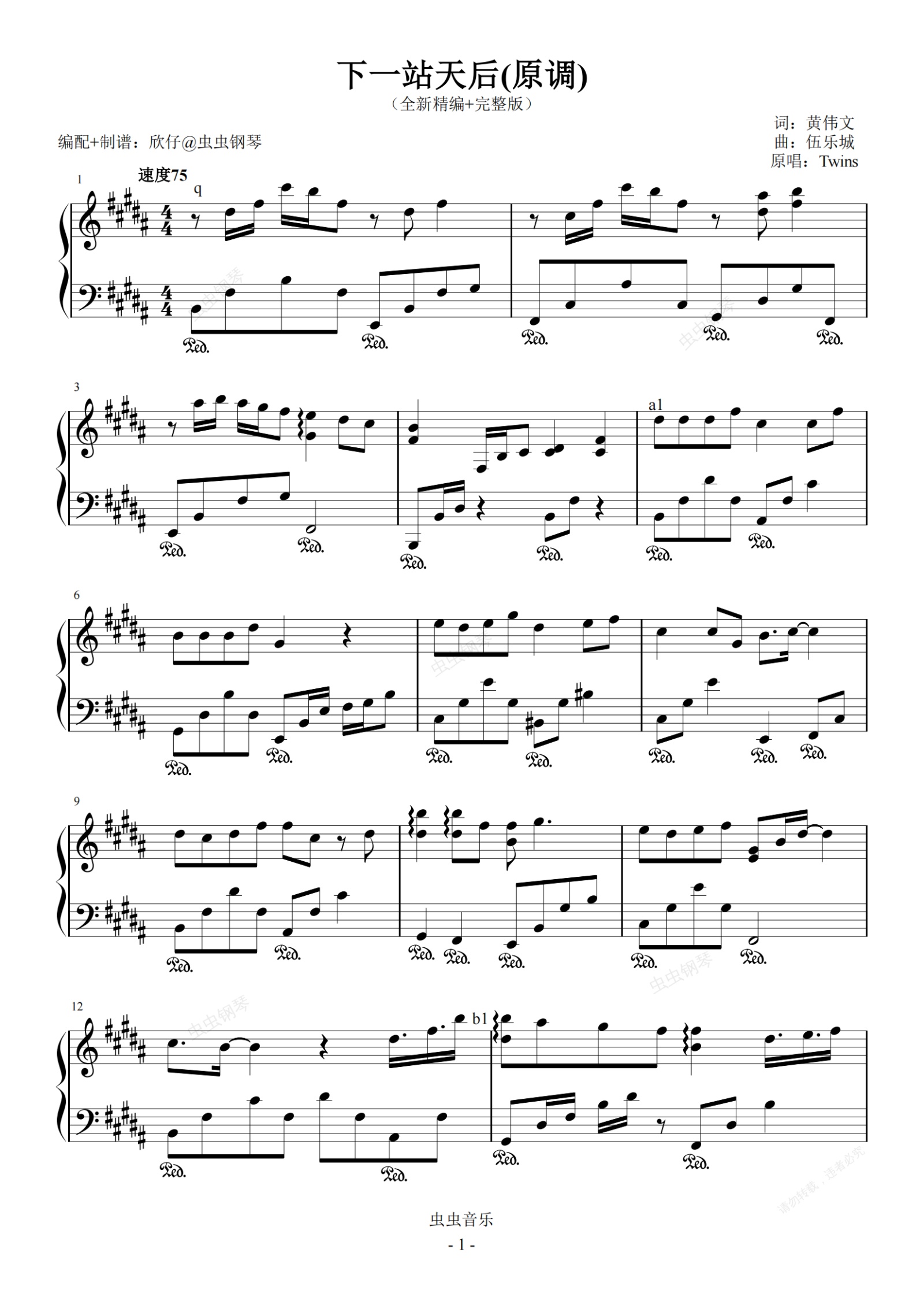 钢琴谱:Twins-B《下一站天后》(全新精编+完整版)