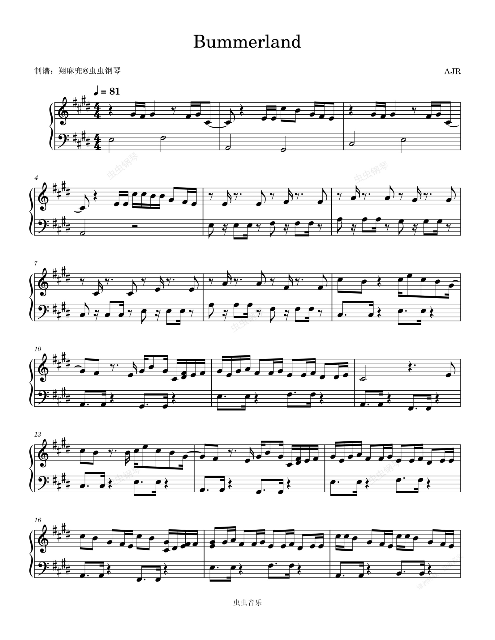 钢琴谱:Bummerland - AJR