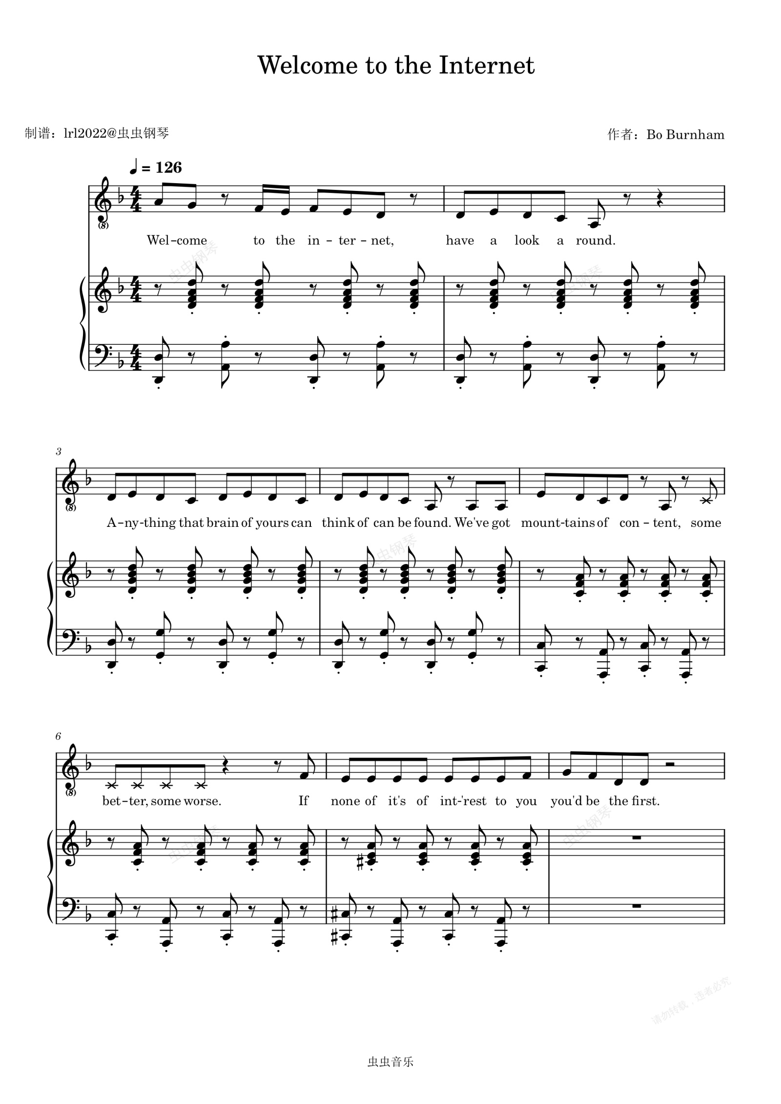 钢琴谱:Welcome to the Internet - 钢琴伴奏弹唱谱+歌词
