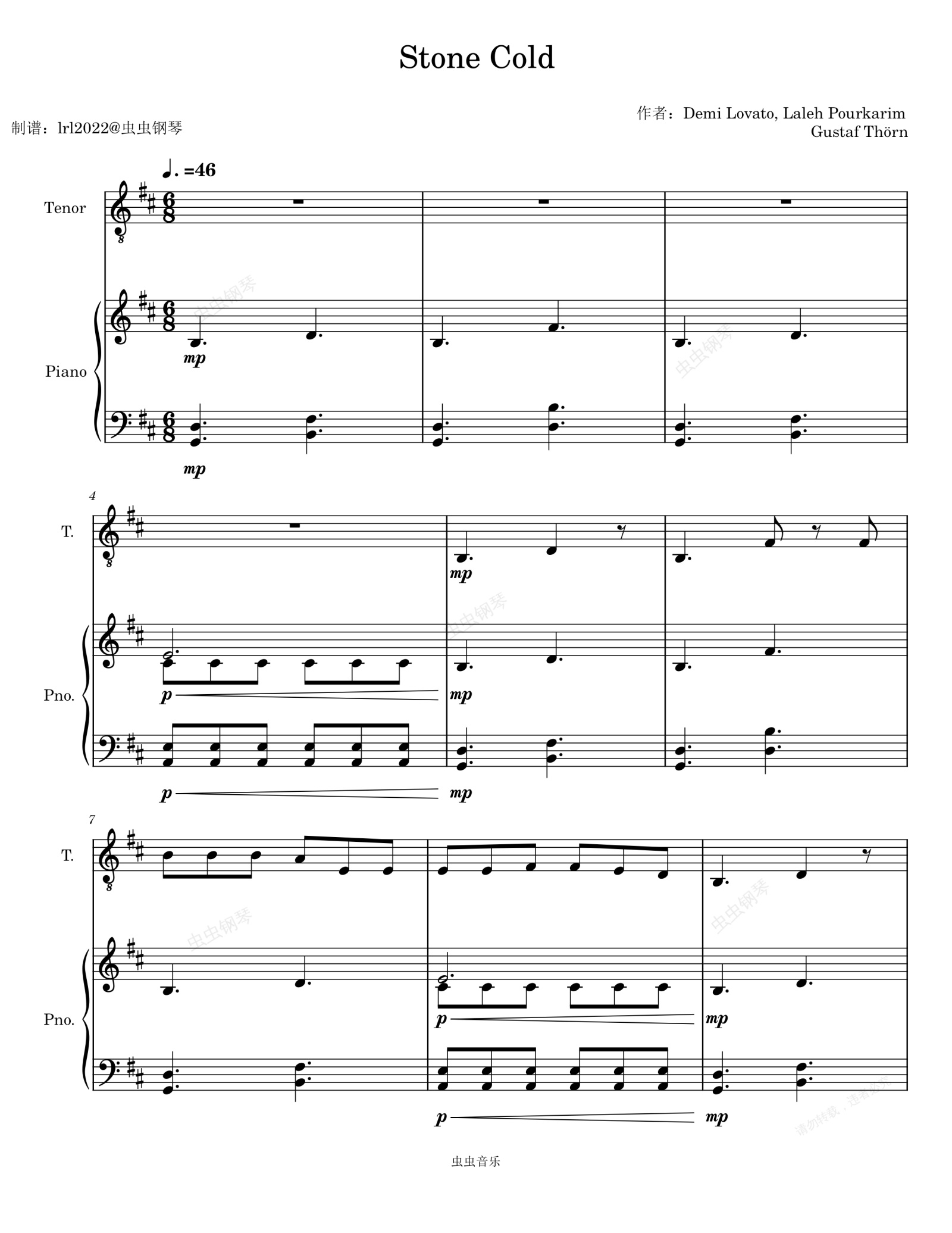 钢琴谱:Stone Cold - Demi Lovato - 钢琴伴奏弹唱谱