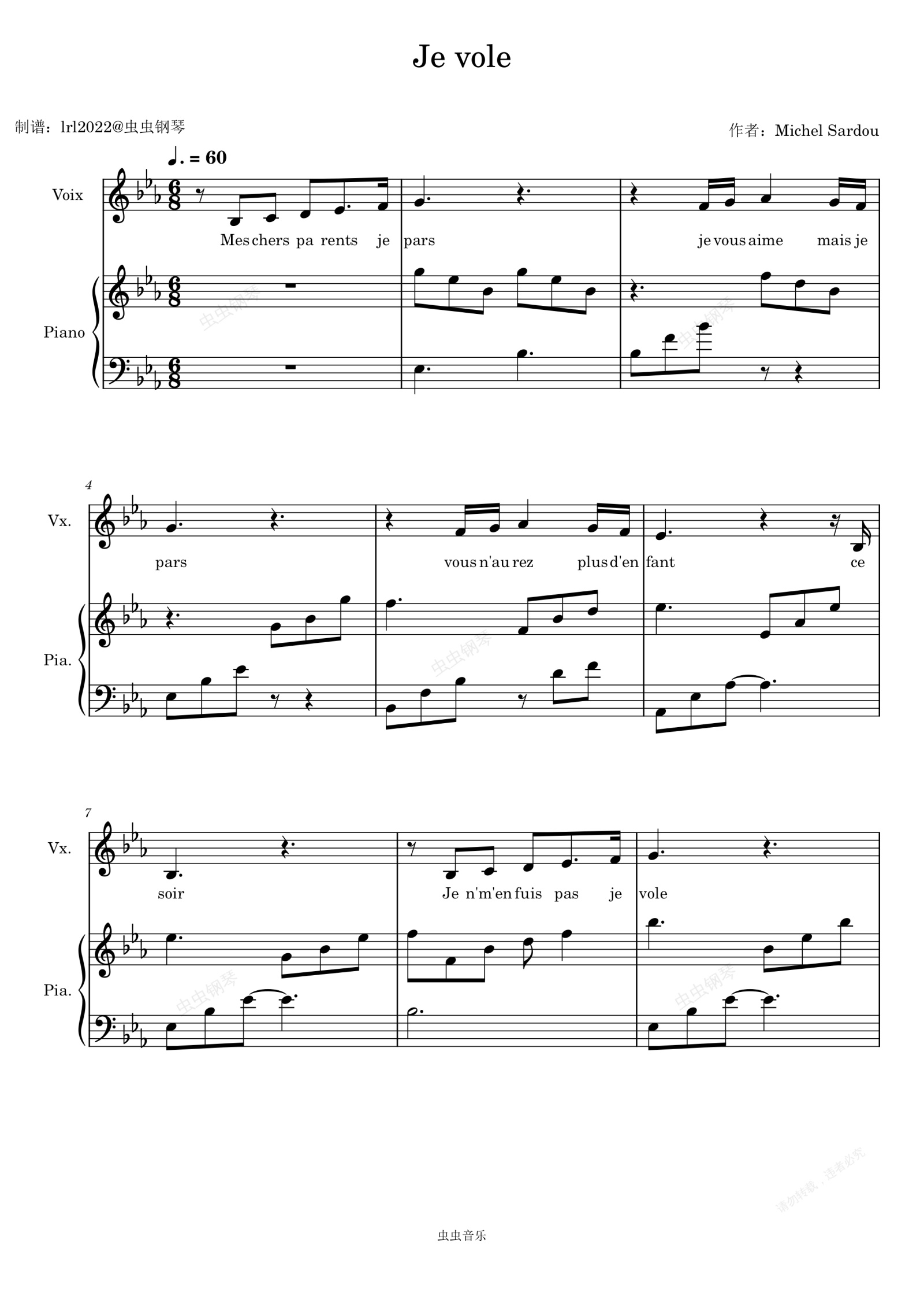 钢琴谱:Je vole - Louane - 钢琴伴奏弹唱谱+歌词