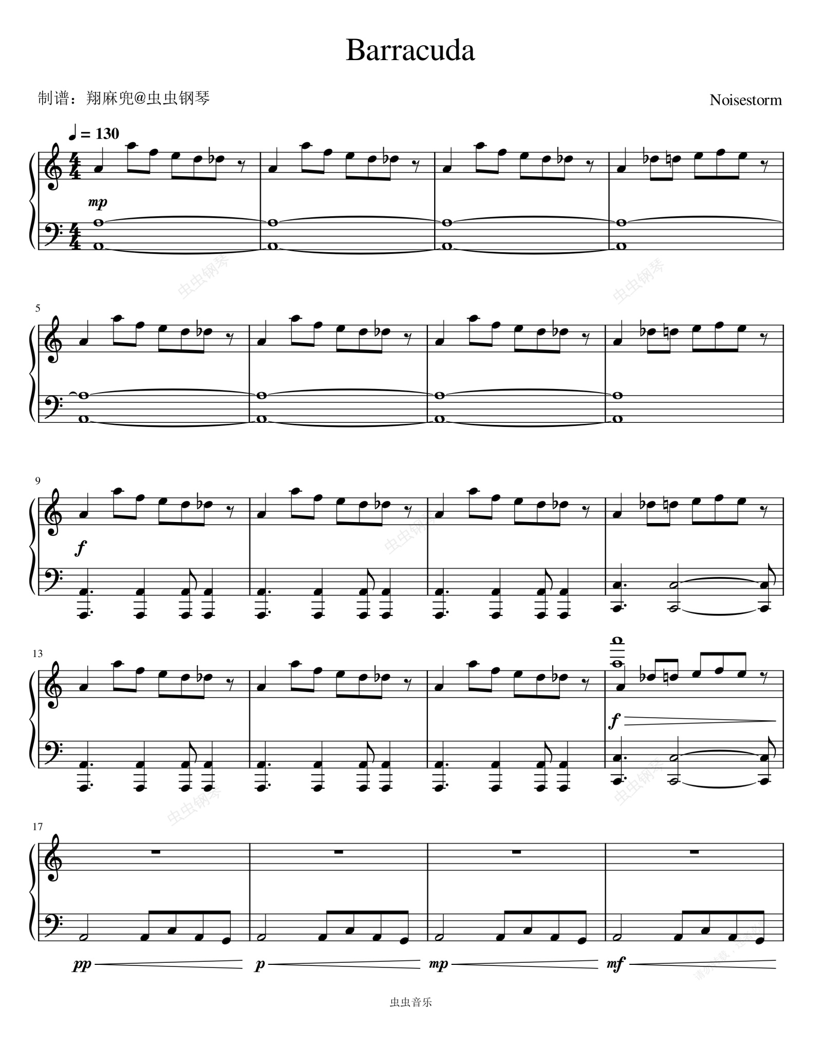 钢琴谱:Barracuda - Noisestorm
