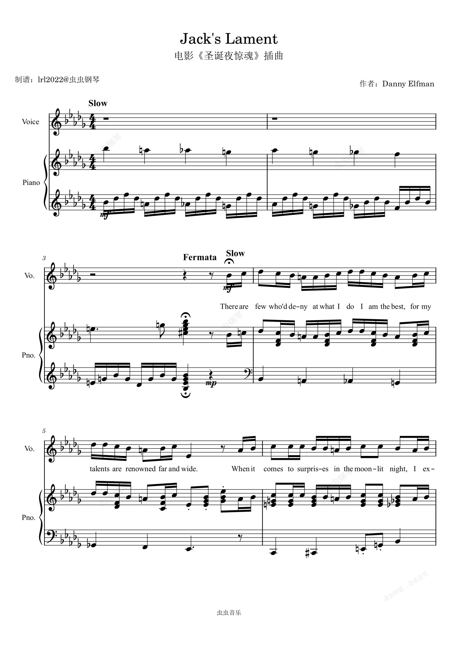 钢琴谱:Jack's Lament -《圣诞夜惊魂》插曲 - 钢琴伴奏弹唱谱+歌词