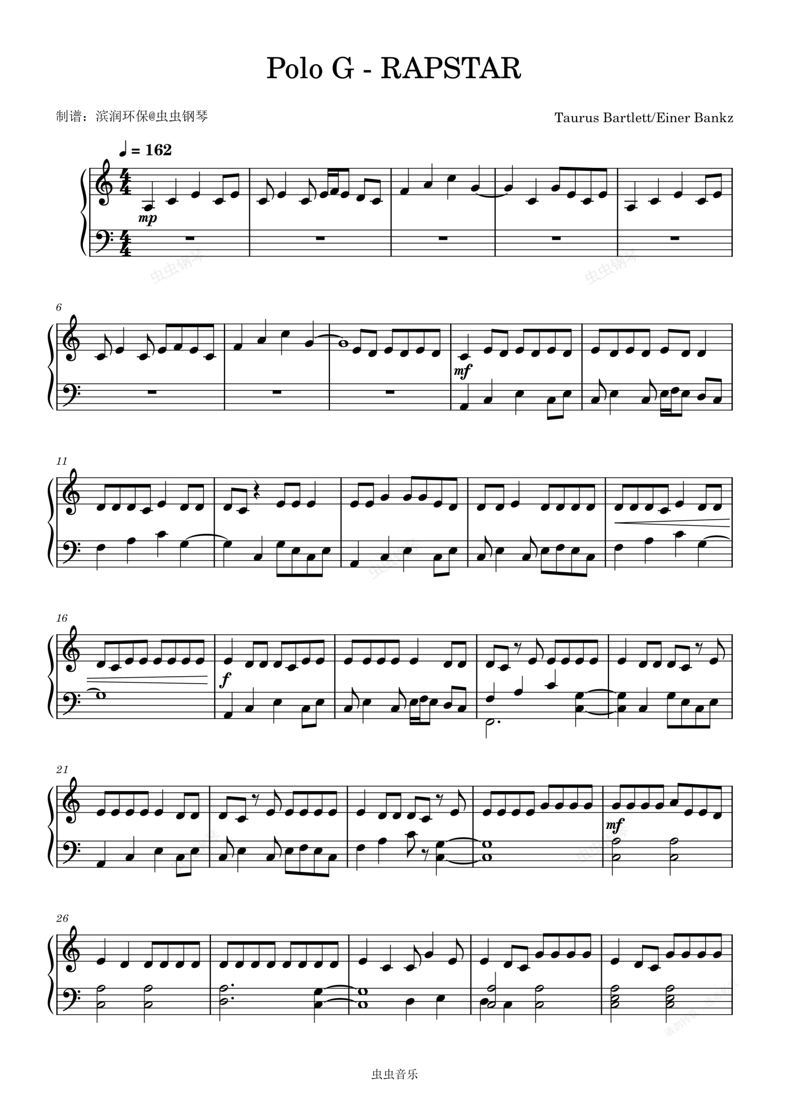 钢琴谱:RAPSTAR (Explicit) - Polo G