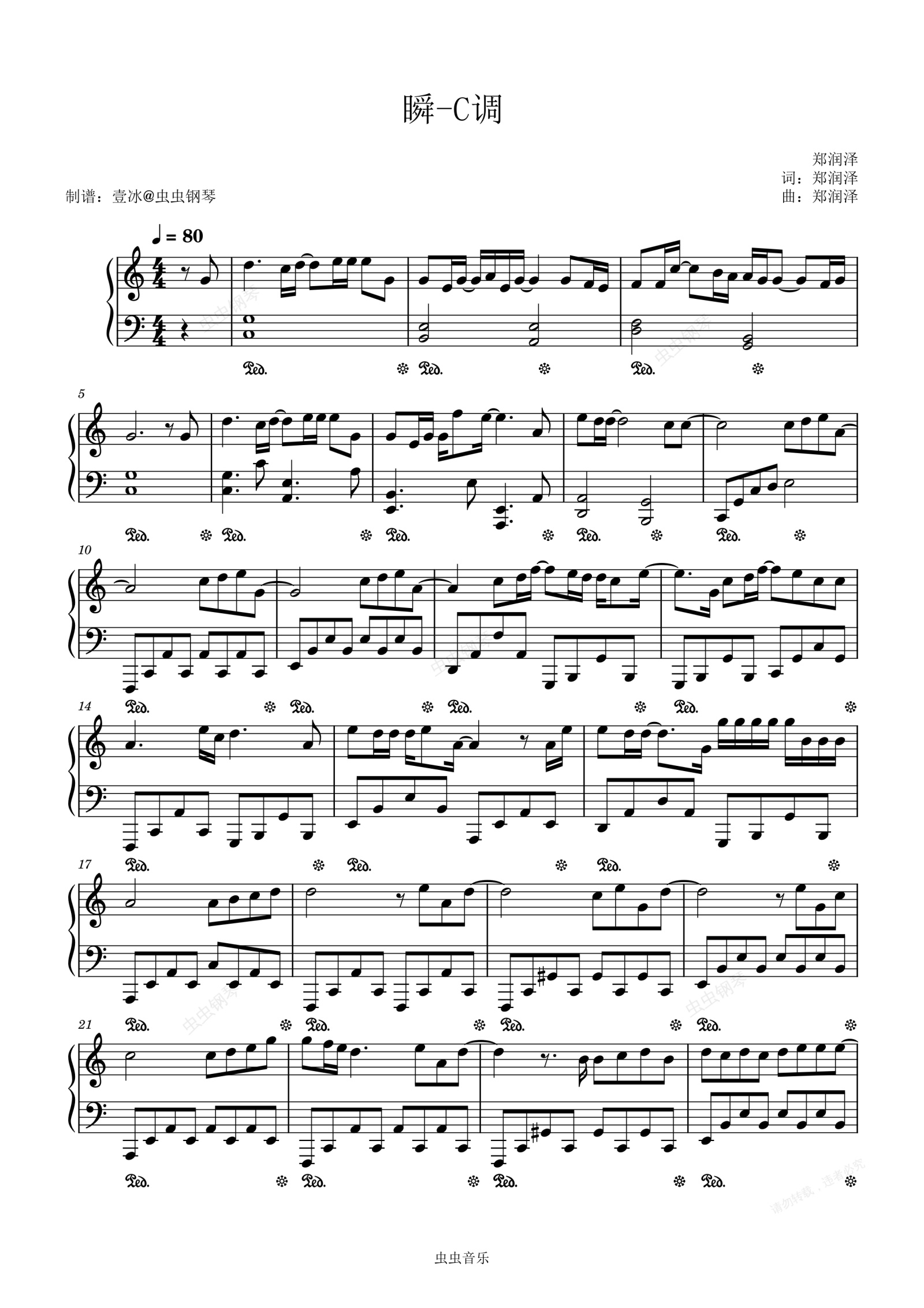 钢琴谱:【抖音热曲】瞬//郑润泽 - C调 简单易上手