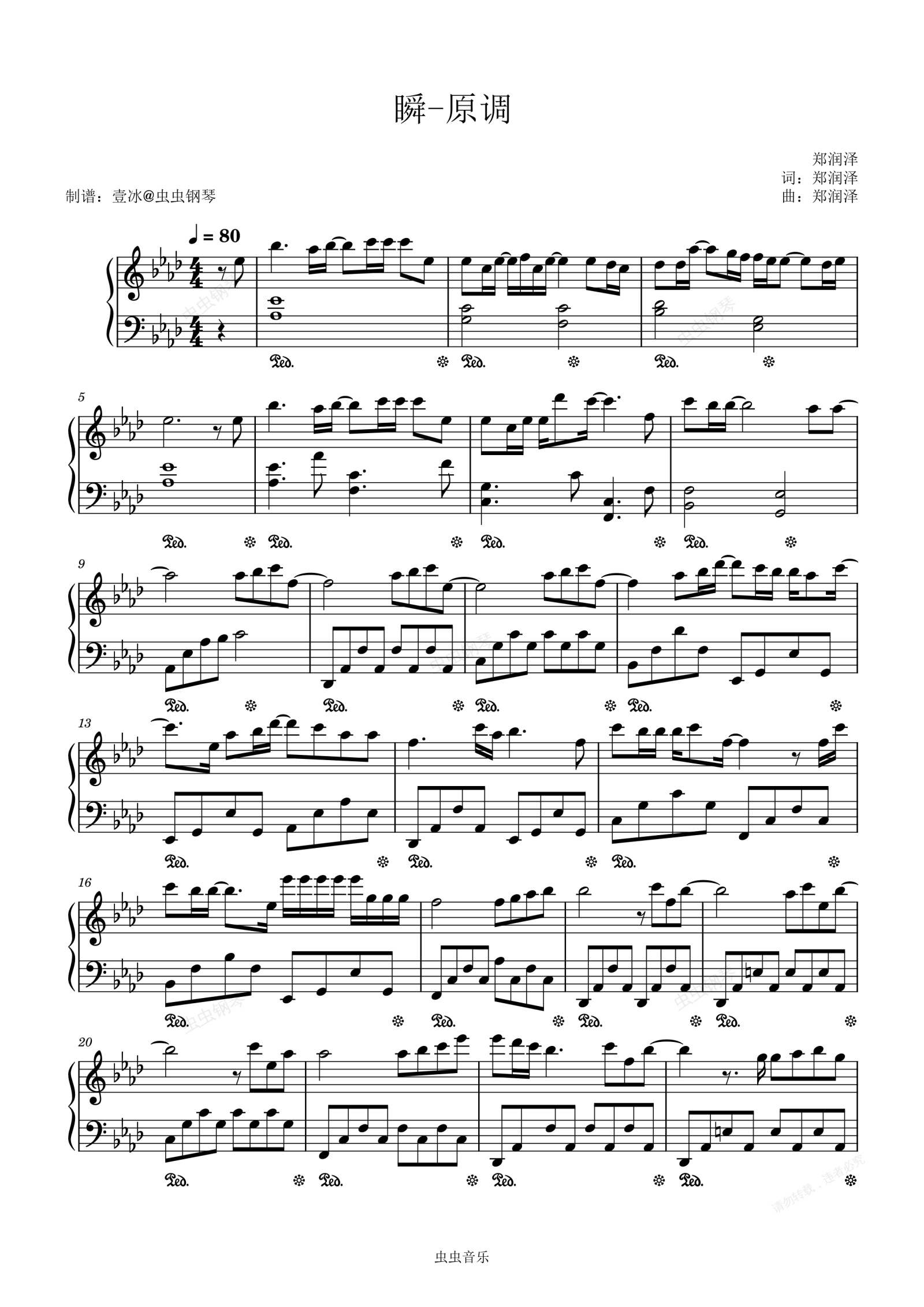 钢琴谱:【抖音热曲】瞬//郑润泽 - 原调 简单易上手