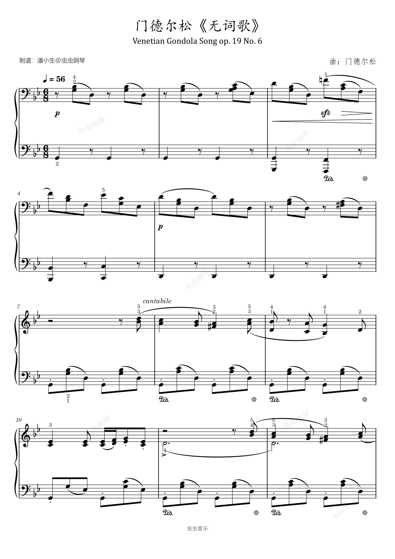 钢琴谱:门德尔松 无词歌 Op.19 No. 6 原版带指法 Venetian Gondola Song