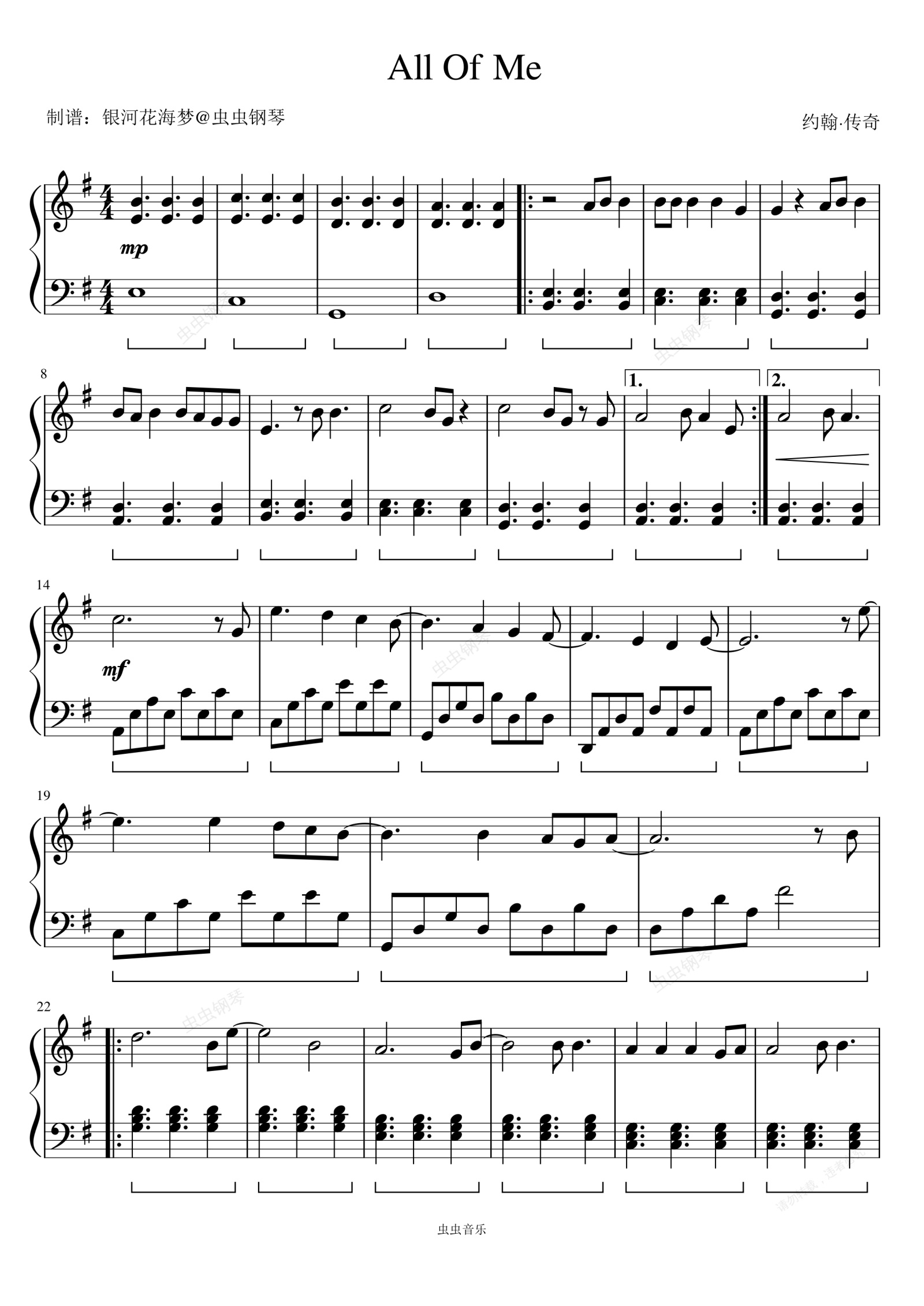 钢琴谱:《All Of Me》我的一切 G大调 约翰·传奇