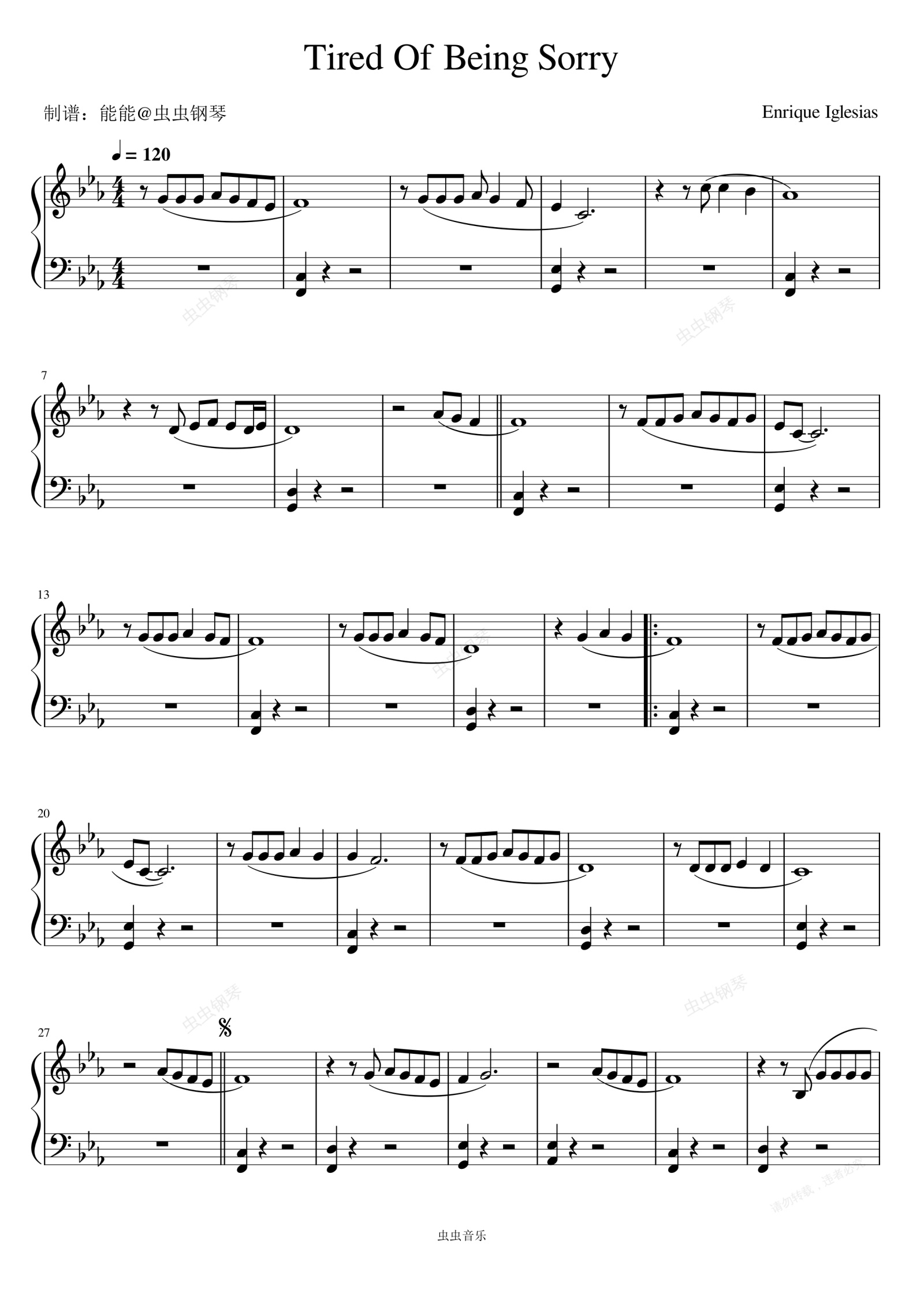 钢琴谱:Tired Of Being Sorry - Enrique Iglesias