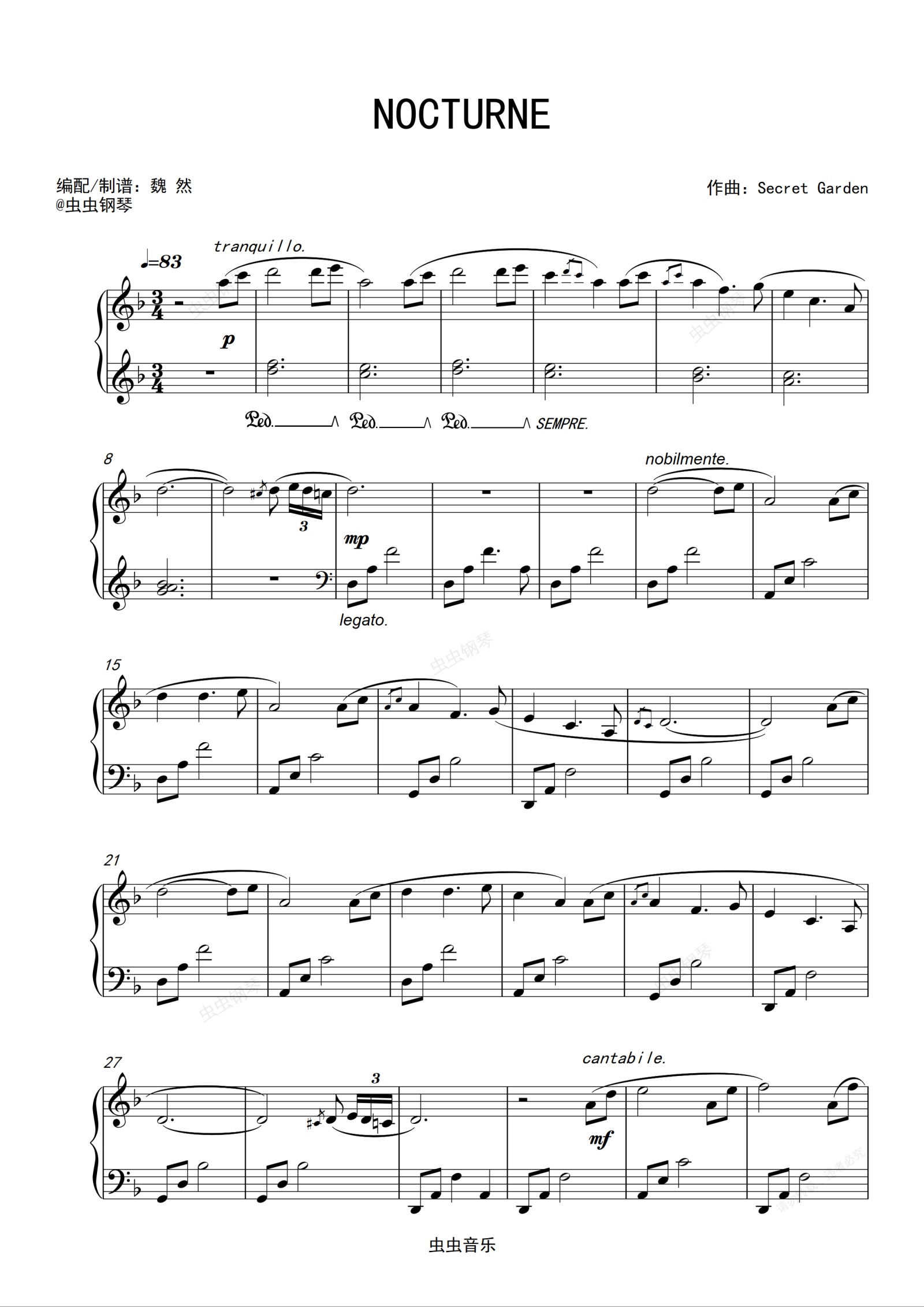 钢琴谱:【神秘园】Nocturne(正谱)——『忧伤歌声』