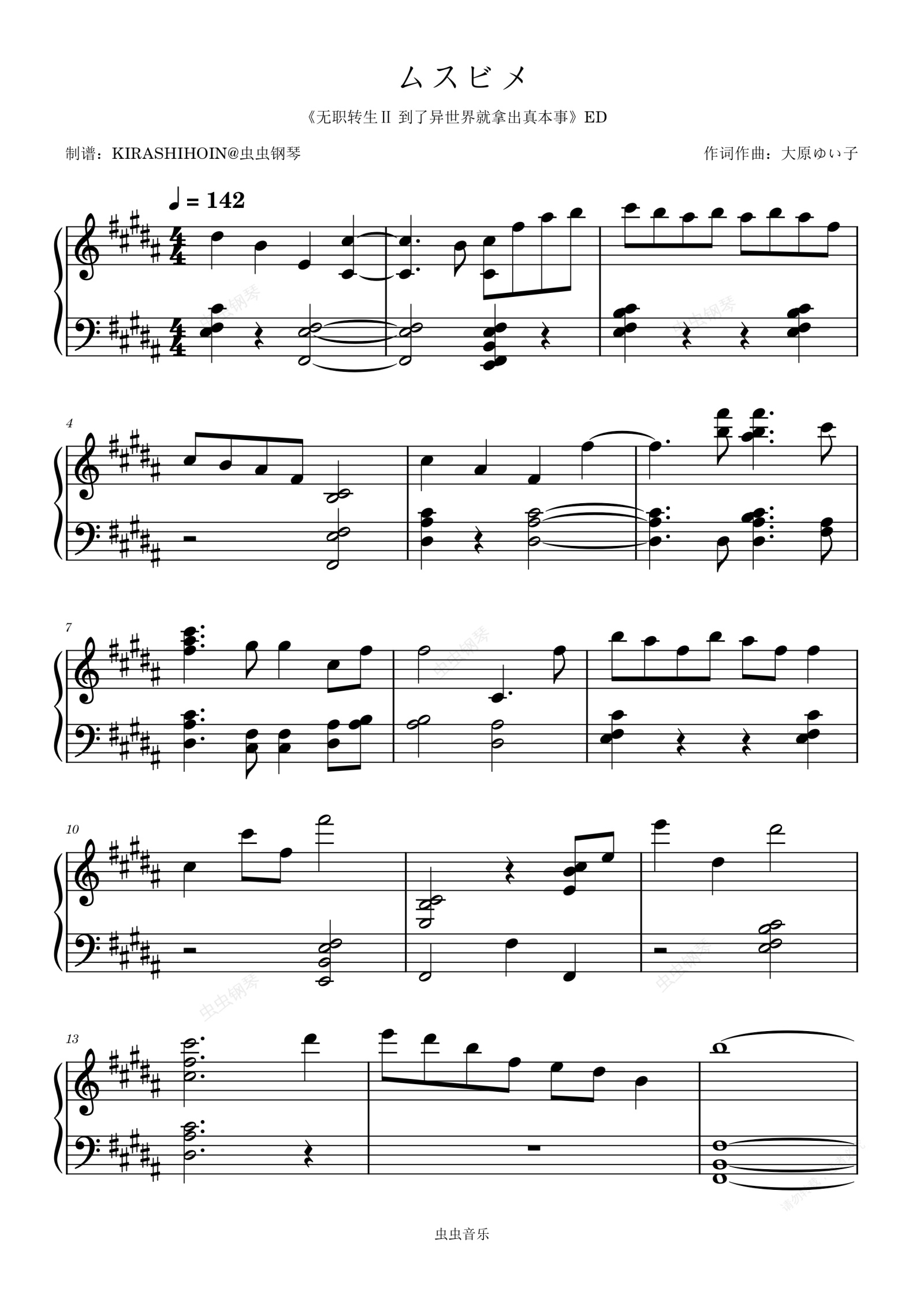 钢琴谱:ムスビメ(《无职转生Ⅱ 到了异世界就拿出真本事》ED/片尾曲)- 大原ゆい子
