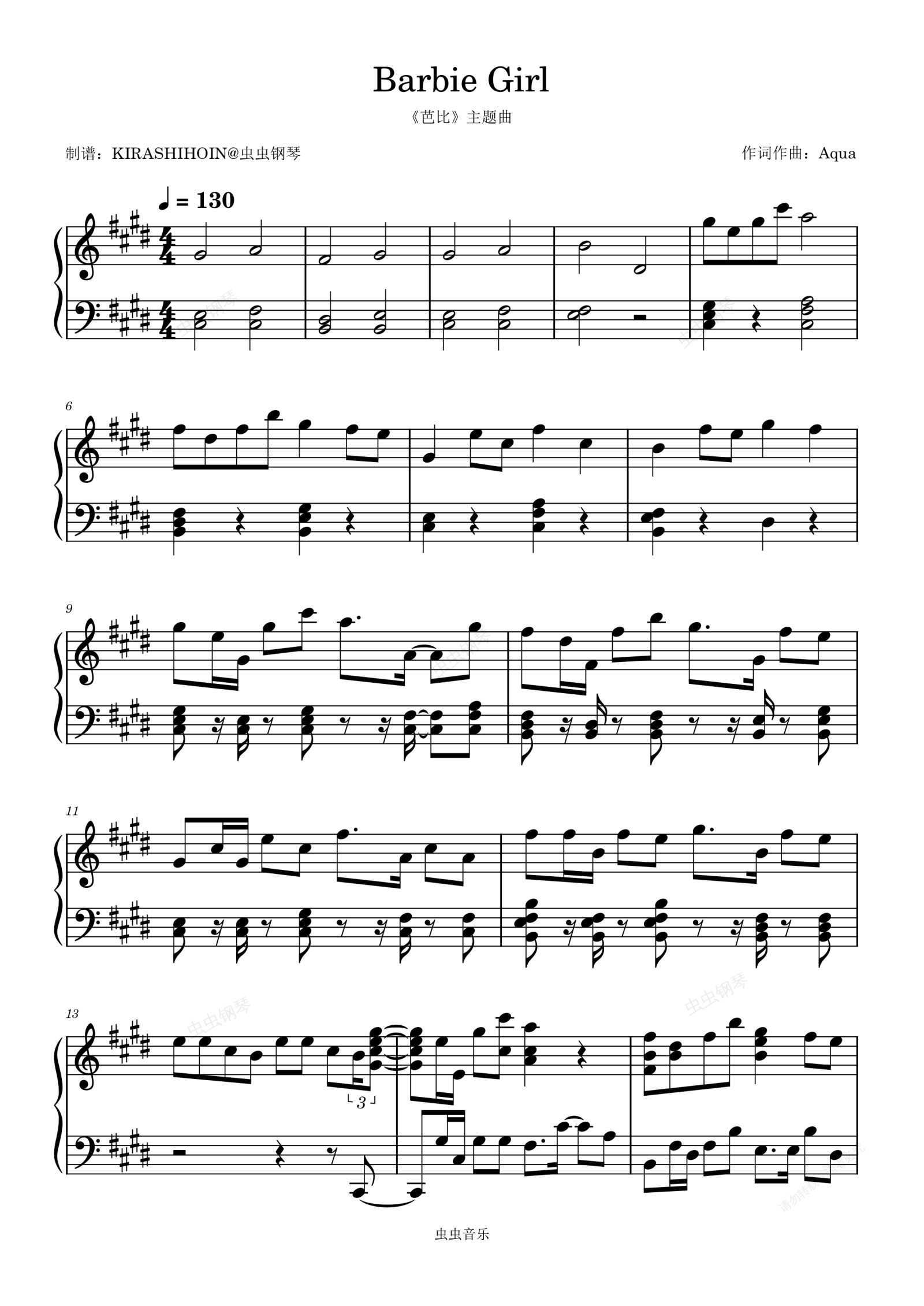 钢琴谱:Barbie Girl(电影《芭比》主题曲)- Aqua
