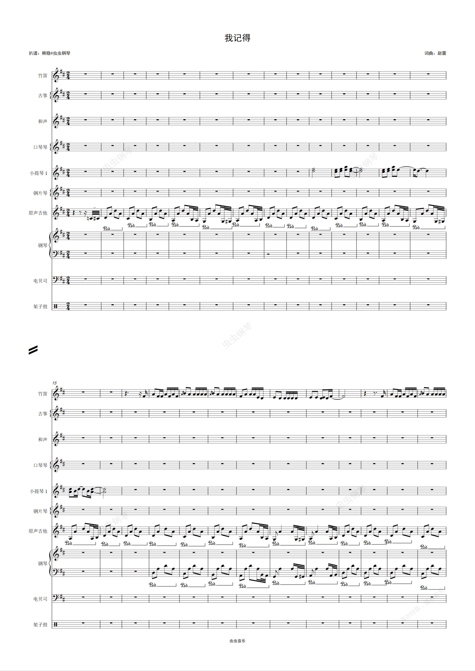 钢琴谱:《我记得》D调版总谱 适合民乐合奏