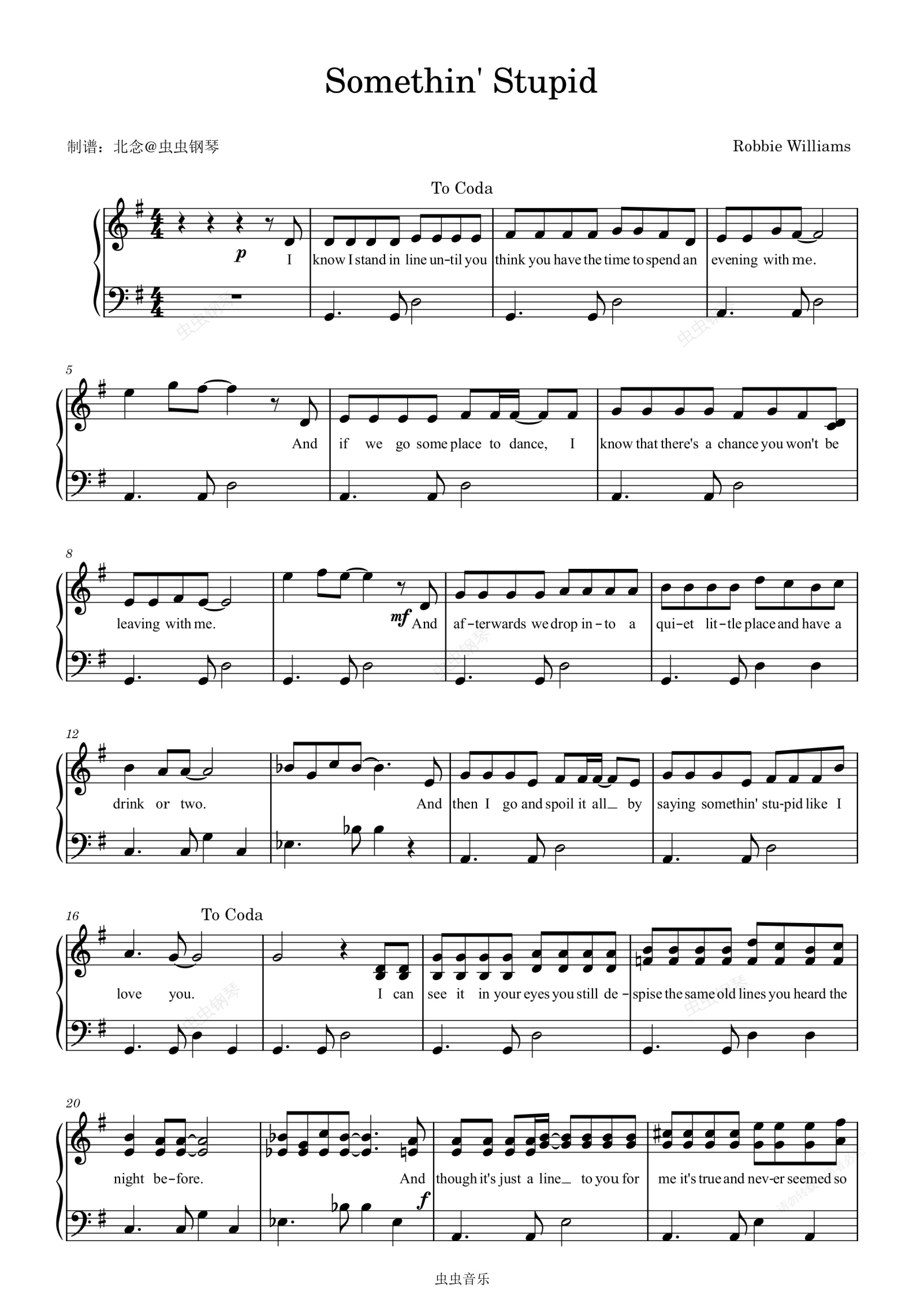钢琴谱:Somethin' Stupid - Robbie Williams (罗比·威廉姆斯)