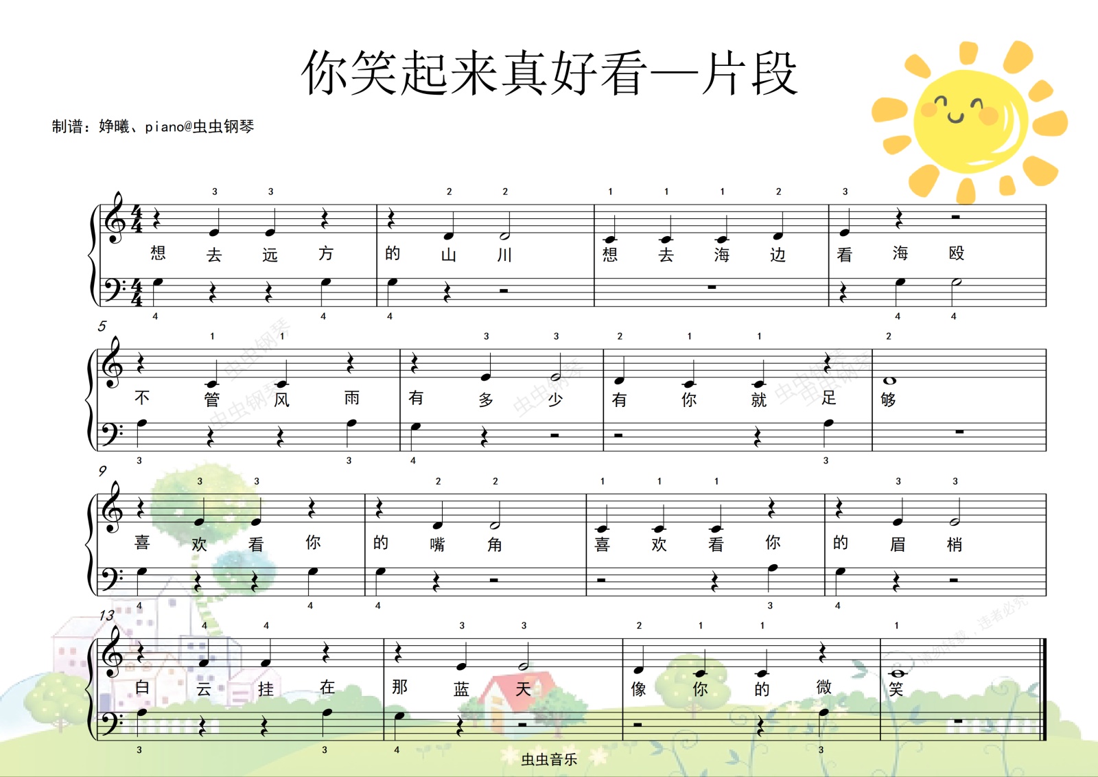 钢琴谱:你笑起来真好看-片段 初学小汤1适用