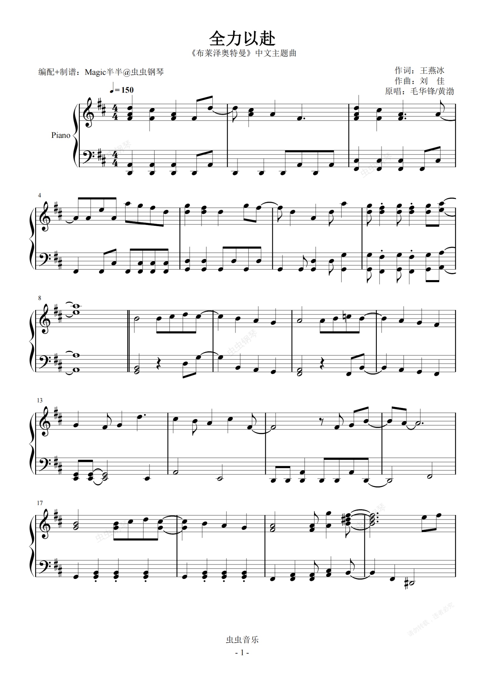 钢琴谱:全力以赴 <布莱泽奥特曼>中文主题曲