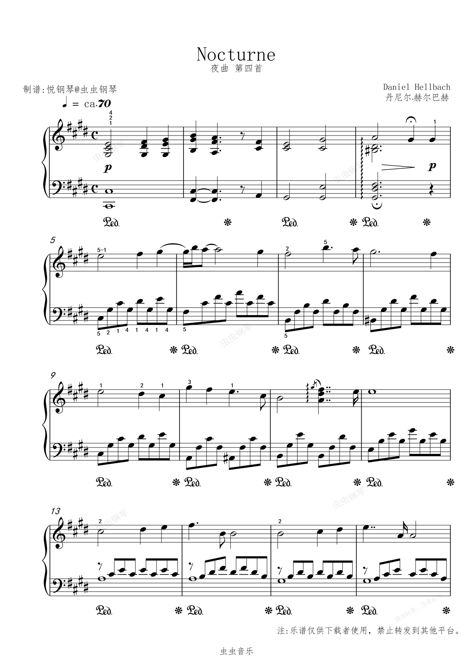 钢琴谱:夜曲//Nocturne 第四首-丹尼尔.赫尔巴赫【抒情-唯美】