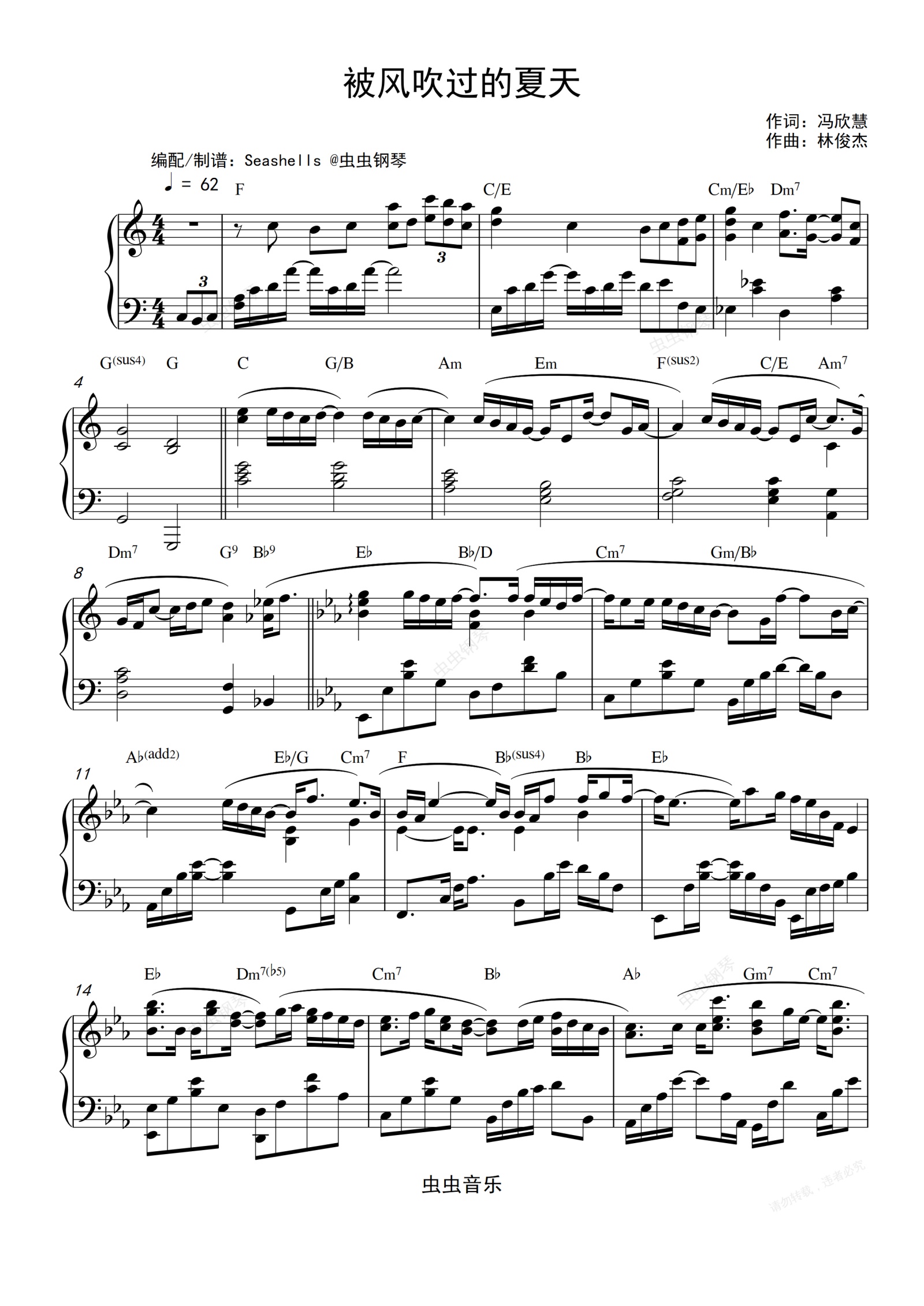 钢琴谱:林俊杰&金莎-《被风吹过的夏天》简化版