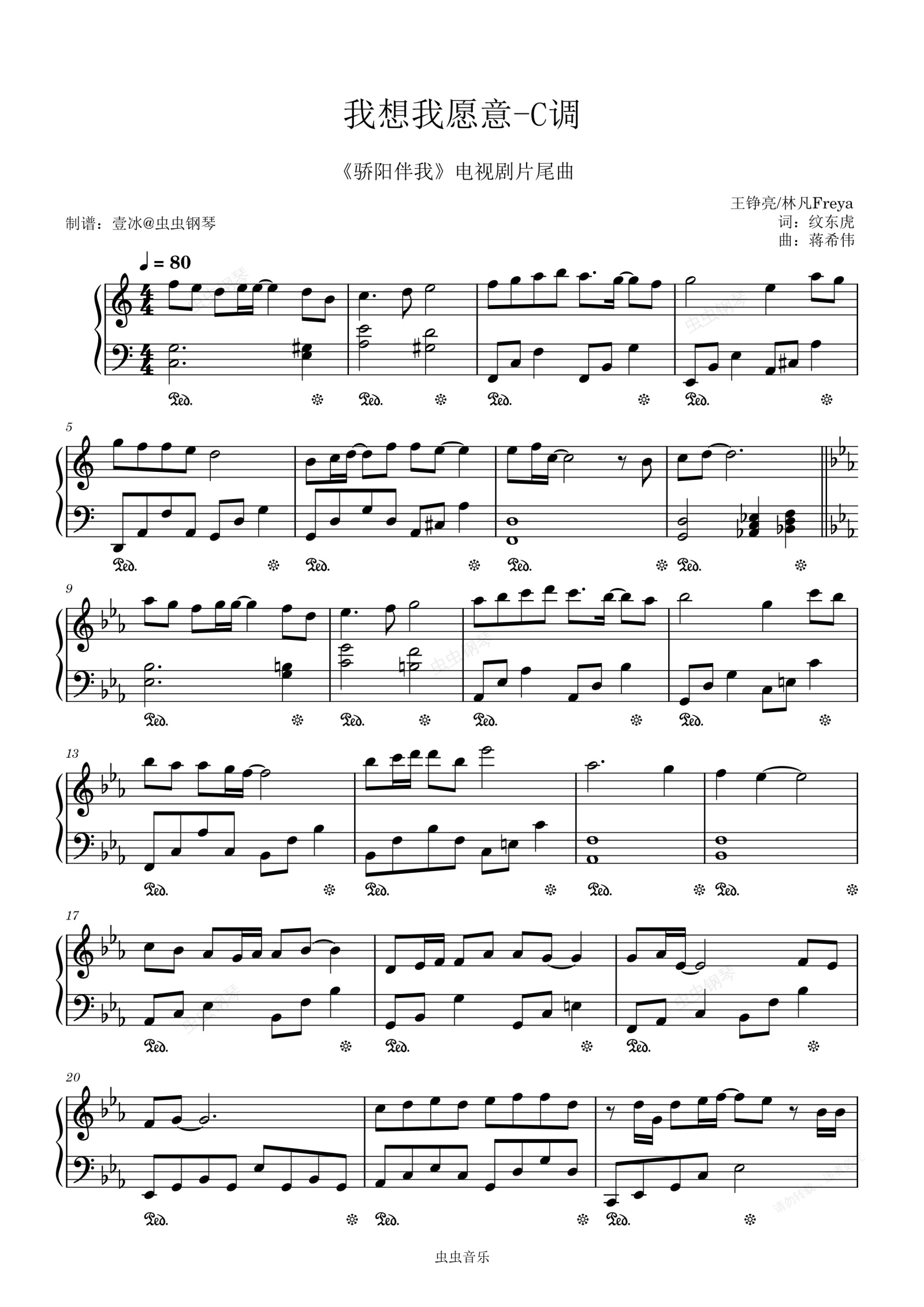 钢琴谱:【影视热曲】我想我愿意 (《骄阳伴我》电视剧片尾曲) - C调