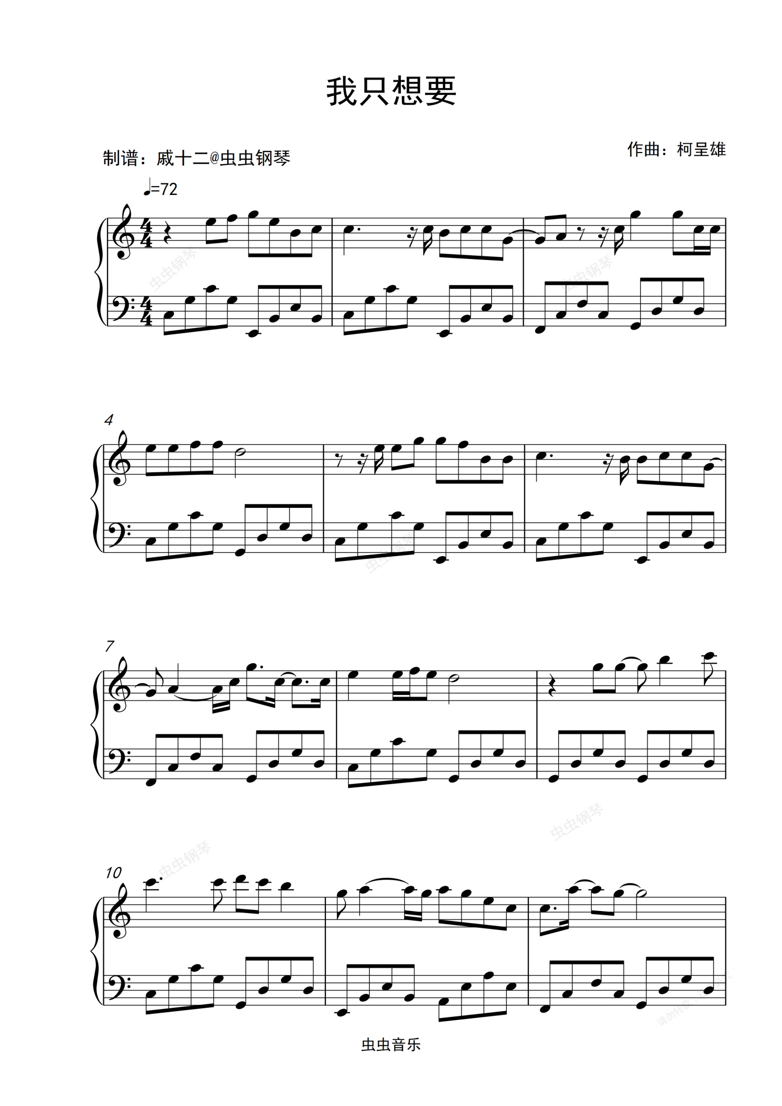 钢琴谱:我只想要《王子变青蛙》插曲-C调简单版