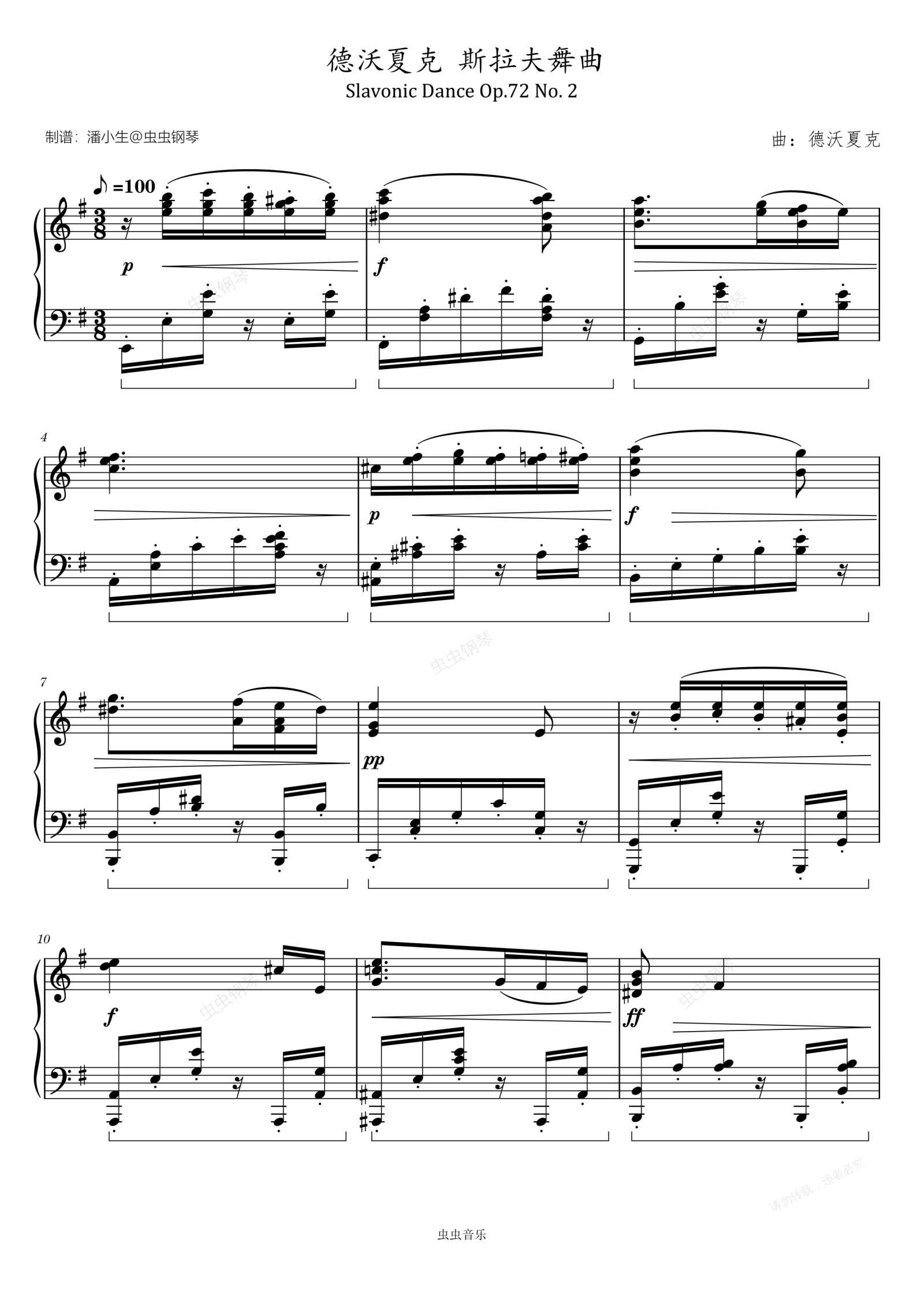 钢琴谱:德沃夏克 斯拉夫舞曲 Slavonic Dance Op.72 No.2 钢琴独奏版