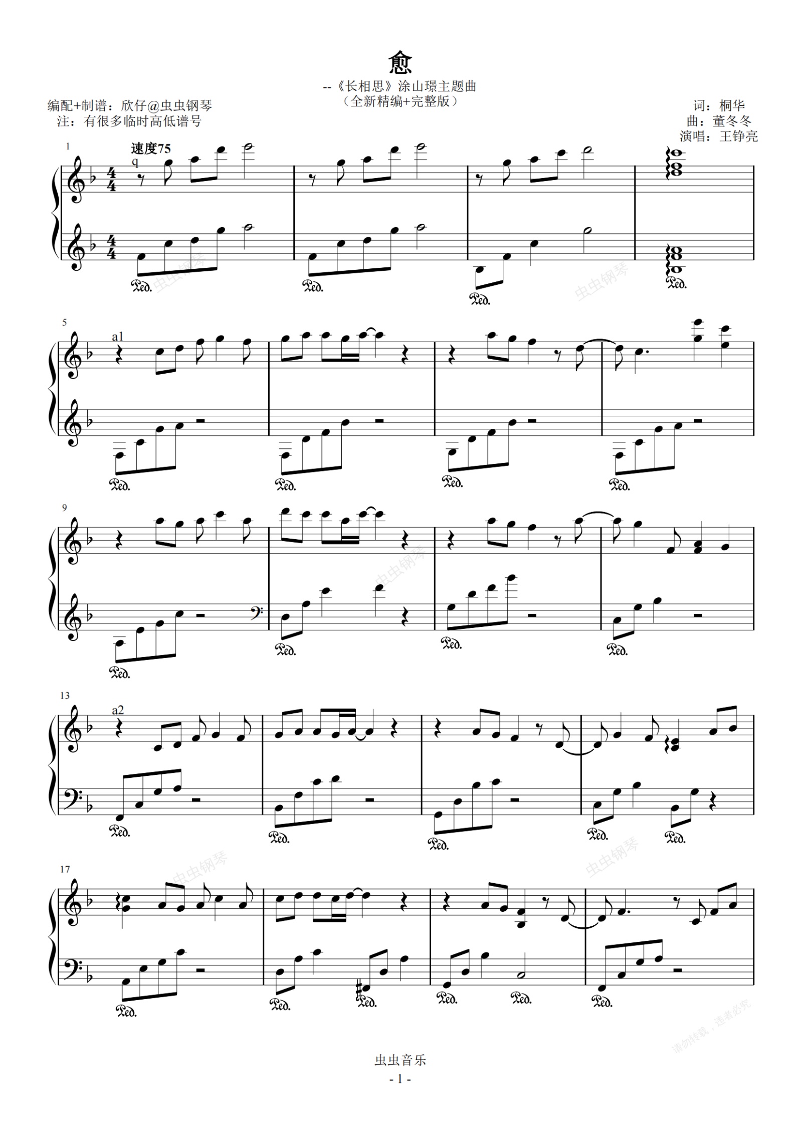 钢琴谱:王铮亮-F《愈》(《长相思》原声带、完整版)