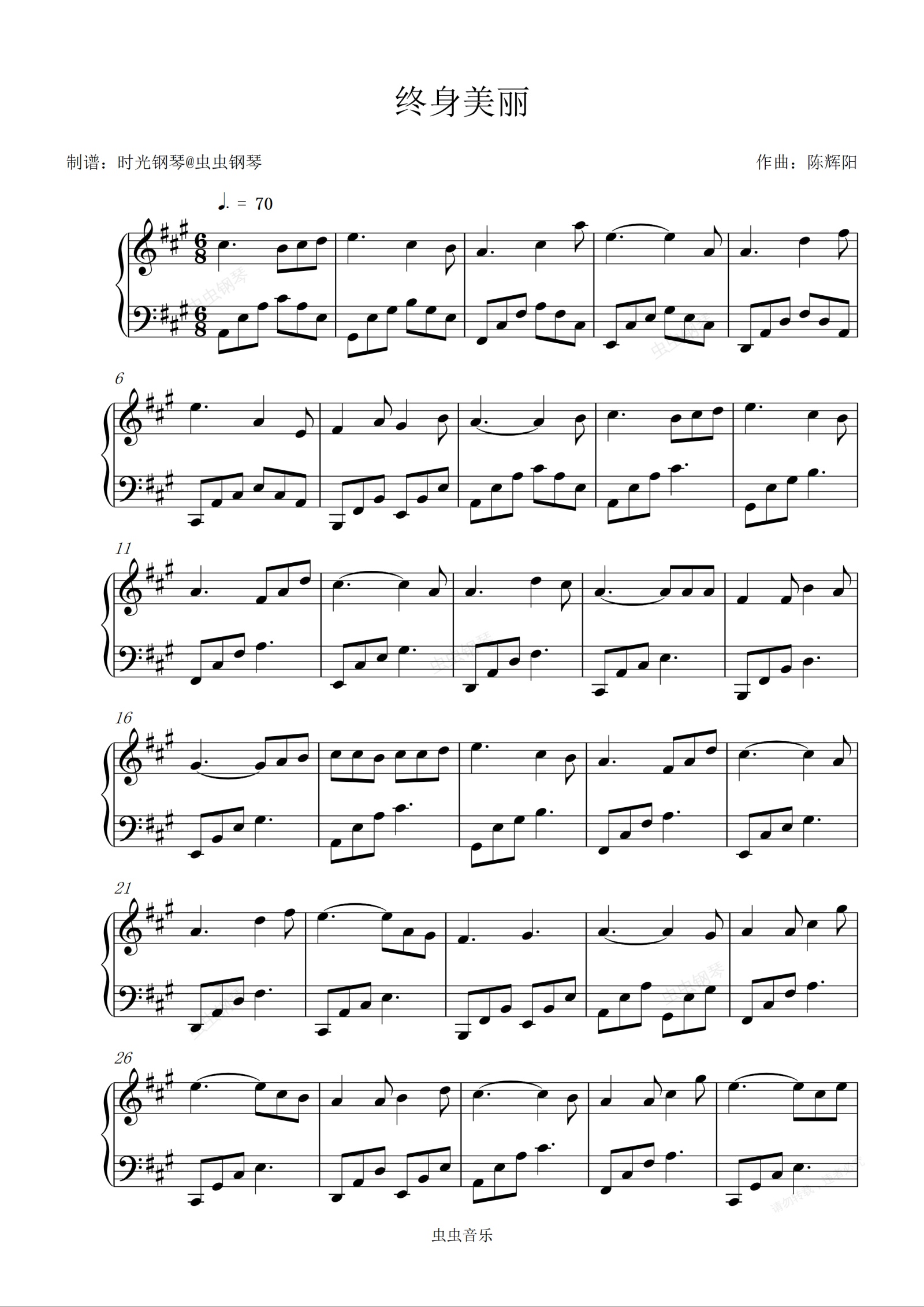 钢琴谱:终身美丽(A调简易版)郑秀文