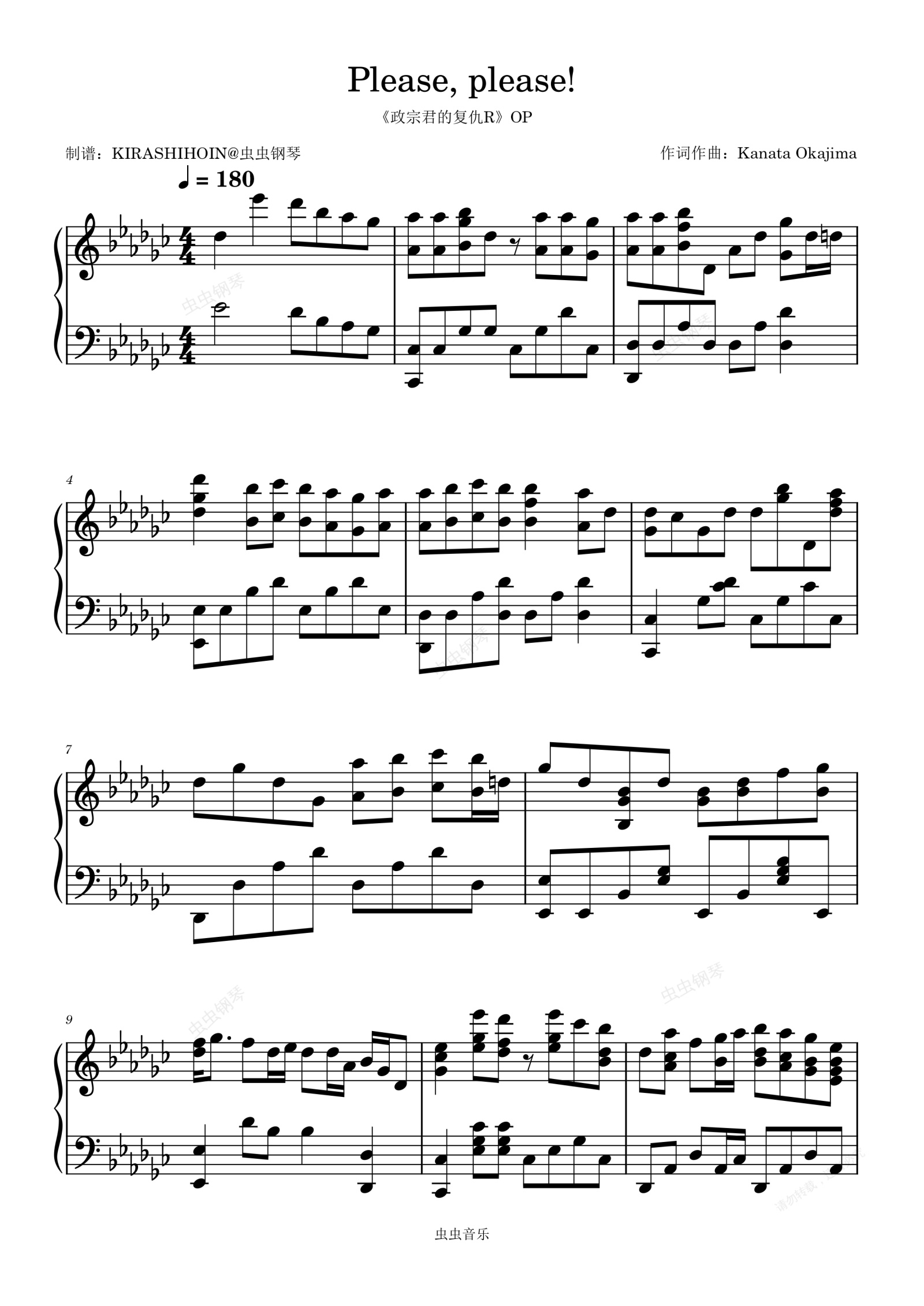 钢琴谱:Please, please!(《政宗君的复仇R》OP/片头曲)- 大桥彩香