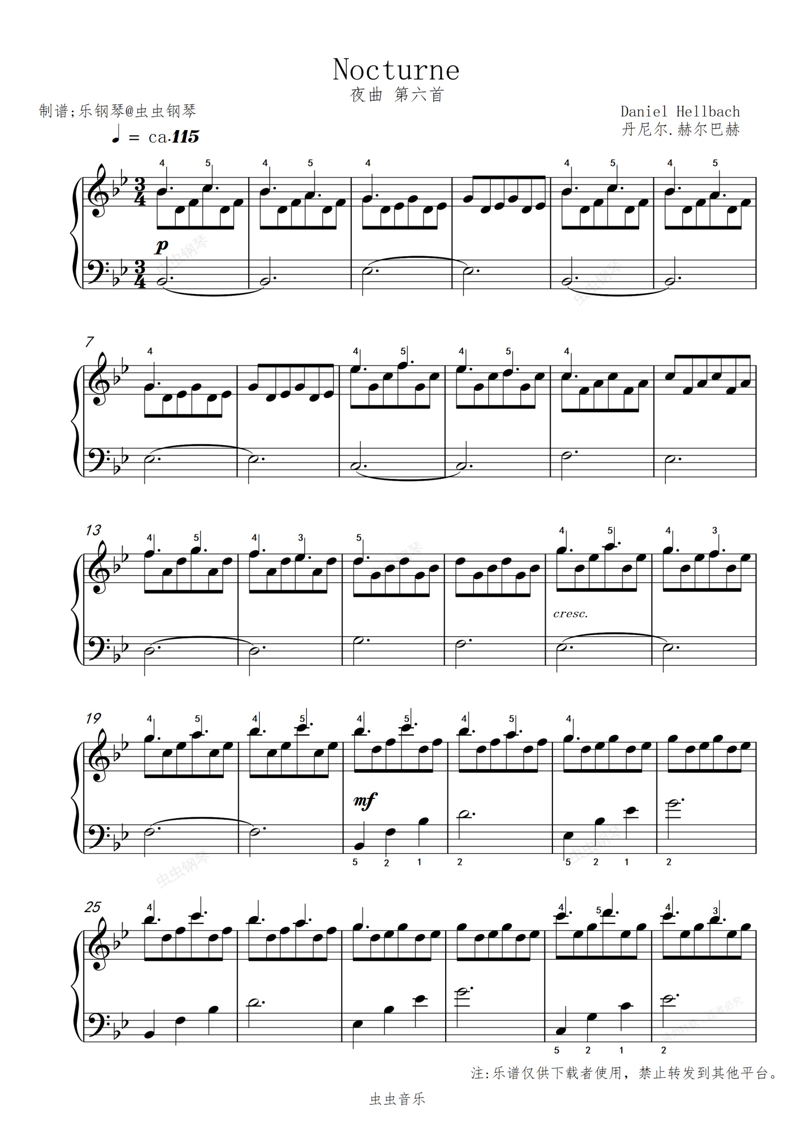 钢琴谱:夜曲/Nocturne第六首- 丹尼尔.赫尔巴赫【抒情-唯美】